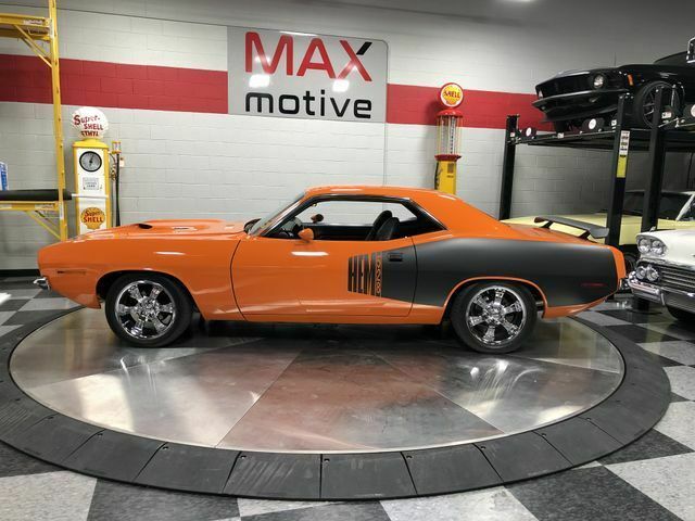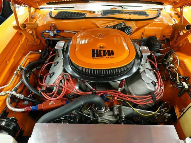 It’s a 1970 ‘Cuda. It’s orange. And yeah, it’s got a Hemi. This amazing restomod is just for you if you’re looking for extreme performance, easy driveability, and classic good looks. Superior engineering and execution render this build a true standout. 528 massive cubic inches of elephant motor reside under the twin-scooped ‘Cuda hood. Hardware is important, but the people behind it make it go. Bob George Racing, a well-known and respected Hemi specialist in Eighty-Four PA, painstakingly assembled the engine using the best components available, including aluminum heads and intake from Indy Cylinder Heads. The heads and intake are critical to making power, and Indy Cylinder Heads builds the best anywhere for some of the most famous clients and projects in the high performance world. They are dedicated Mopar experts! The latest technology makes this beast perform. You’ll find most of the fast guys on the street and the track using laptops to dial in the optimum tune. The laptop, already programmed and downloaded, comes with the car. Working with a Motec Fuel Injection system, the Hemi starts and runs great. But custom headers and 3-inch dual pipes, along with the ultra-performance components inside the motor, provide plenty of attitude in the exhaust sound. You’ll also appreciate that this is a clean, straight car. The doors open and close easily. The Vitamin C paint looks beautiful with the contrasting black billboards. And the interior is restored to original specs. Except for a super comfortable Grant GT steering wheel, the driving environment is all 1970 ‘Cuda. Even the center console and Slapstick shifter are where they should be. Extras provide functionality without intrusion. For example, the Slapstick operates a 727 Torqueflite complete with a B&M shift kit, but under the dash, you’ll find the module for a Gear Vendors Under/Overdrive that adds ratios and driveability making the car even more versatile and enjoyable. That little red button? That’s the line-loc. (We all know what that’s for.) The toggle switch? That gives you direct control of the electronic fuel pump. And just so you have it all, a Pioneer sound system is neatly installed for those rare times when you’re not listening to the Hemi. This 1970 ‘Cuda remains true to its roots, and this being a highly revered E-body, that’s important. Yet high tech upgrades such as LED lighting keeps this ‘Cuda in step with current trends. You can enjoy the latest in high performance hardware meticulously assembled by true enthusiasts renowned as experts in their field. A big 3-ring binder is full of helpful photos, receipts, and instructions to help you operate the car and to outline its history. The Hemi billboards and rear wing are the kind of details that nicely complete the build, plus send a flag-waving Mopar message as an invitation to the faithful and a warning to any would-be opponent.