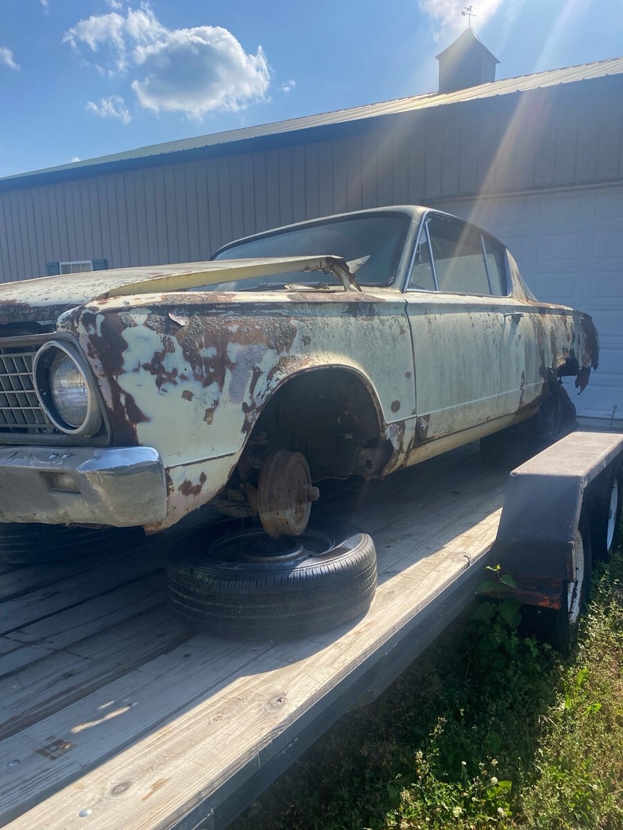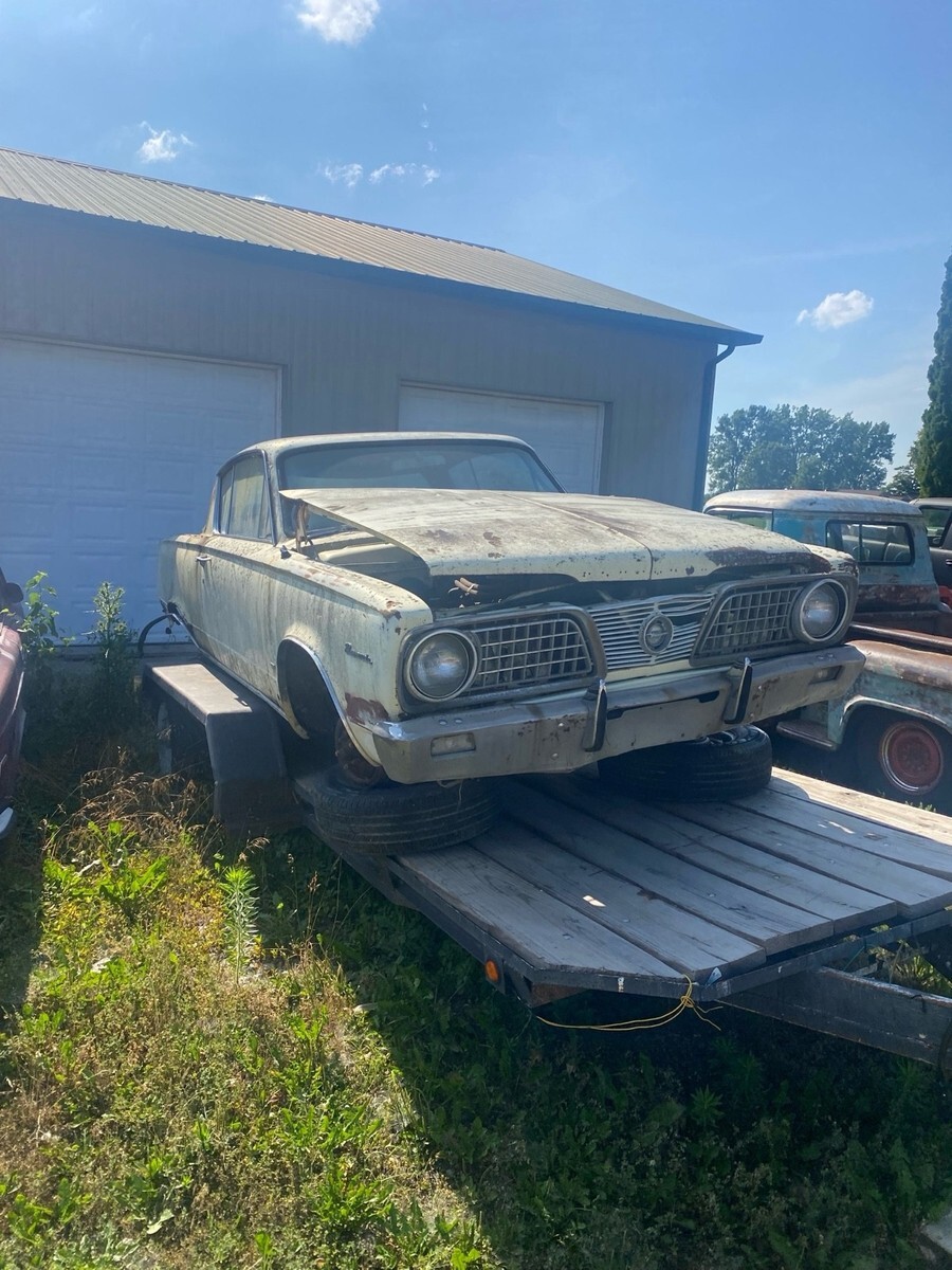 1966 Plymouth Barracoda Parts Car - no title Vehicle Details 1966 Plymouth Barracoda Parts Car - no title - as is. Wheels it is sitting on are not included. Studs broken off so no way to put wheels on the vehicle. Must have a way to unload off my trailer. Can deliver for $1 a loaded mile (one way). All the glass is good except the front windshield. Drivetrain is complete and looks like it might run. Lots of good usable parts. Can help with delivery for $1 a loaded mile. Studs are broken off the hubs so will need a way to get it off my trailer. Wheels it is sitting on are to a jeep and are not included. |