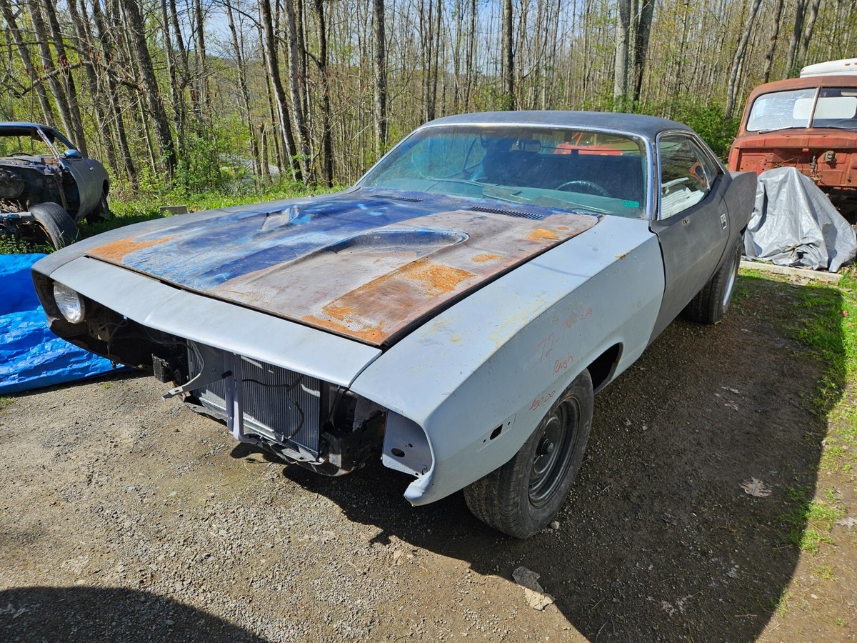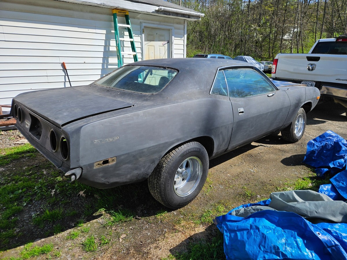 Update, found a nice set of front fenders and a new set of rear quarter skins that will come with the car. This is a Good Project Car requiring full restoration. We can complete a partial of full restoration for an additional cost. We are a professional shop and have been restoring cars for over 40 years. 1973 Barracuda (not Cuda) Originally a 318, now has a Built 360, 4 Barrel Edelbrock Built 727 Automatic Transmission Bucket Seats w/ Console Standard Dash Open 8 3/4 Rear End (non-posi), not sure of gears. I have a clean title for the car in my name. Body - I do have a new AMD 2pc trunk pan, trunk extensions, left front inner fender, gas tank, and fuel lines, It will need (at a minimum) outer rocker panels, left side floor pan, right front fender (have one that is roughbut could be repaired). The roof (rough),doors and quarters need some work, but I think they could be saved.The left rear frame near the shackle willneed a small repair. And quite a bit of body work and paint. Needs aFront Valance. I have the taillights Mechanical - Runs good, moves and stops. Transmission either has a very high stall converter, or maybe need more fluid. Has headers, needs exhaust from headers back. Brakes all should be rebuilt. Maybe a new master cylinder. Interior - Everything will need to be to be redone. Does have all the seats. Dashpad is cracked. Car is available for inspection by appointment only. Located in Newark Valley, NY 13811 VIN BH23G3B597209 Fender Tag Codes E44 318-2 Barrel D34 TorqueFlite Automatic Transmission BH23 B = Plymouth Barracuda H = High 23 = 2 Door Hardtop G3B G = 318 150HP(net) or 170HP(net) 1-2BBL 8 CYL 3 = 1973 B = Dodge Main, Hamtramck, MI, USA 597209 Sequence Number '597209' JY9 Paint Code: Tahitian Gold A6X9: Black Vinyl Bucket Seats 000 Upper Door Frame: Full Door Panel 731 Date Built: 7 / 31 / 1973 694821 Order Number: 694821 V1X Roof Type OR Color: Full Vinyl Top - Black U Built to Specifications for USA Order B41 Front Power Disc Brakes C16 Console w/ Buckets C56 Bucket Seats 1972 up G37 Left Hand Remote, Right Hand Manual Chrome Mirrors H51 Air Conditioning /w Heater M21 Roof Drip Rail Moldings R11 Music Master Radio AM V6X Black Longitude Sports Stripe 26 26 in. Radiator EN2 End of Codes Assembly Line 2