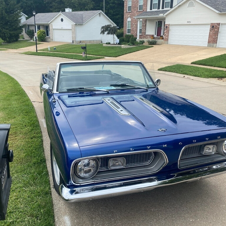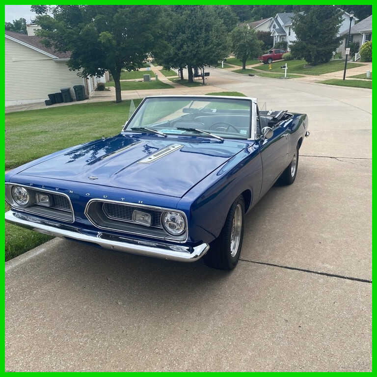 1967 Plymouth Barracuda Convertible For Sale in St. Louis, MO 63129 This Barracuda is powered by a 340 V8 engine paired with an automatic transmission. It is shown with a blue exterior and a black interior. This vehicle has been well-maintained. Features Upgraded Convertible Top Upgraded Vinyl Interior Upgraded Audio System Chrome Accents LED Lights 2” Exhaust Owner’s Notes “For sale is a 1967 Plymouth Barracuda Convertible with a strong-running 340 V8 under the hood. It’s equipped with Edel 1967 Plymouth Barracuda Convertible For Sale in St. Louis, MO 63129 This Barracuda is powered by a 340 V8 engine paired with an automatic transmission. It is shown with a blue exterior and a black interior. This vehicle has been well-maintained. Features Upgraded Convertible Top Upgraded Vinyl Interior Upgraded Audio System Chrome Accents LED Lights 2” Exhaust Owner’s Notes “For sale is a 1967 Plymouth Barracuda Convertible with a strong-running 340 V8 under the hood. It’s equipped with Edelbrock cam, heads, intake manifold, and carburetor, paired with an automatic transmission and an 8¾ rear end supported by ½-ton springs. The aluminum radiator and fan keep it cool, and a fresh oil change was just completed. The convertible top is only three years old, and a new starter and fuel pump were installed in October 2024. This classic has a throaty 2-inch exhaust with headers and chrome tips, and it stops confidently with disc brakes all around—Kelsey Hayes in the front and Wilwood in the rear. New front shocks, upgraded LED rear lights, and powerful 1,000-candlewatt LED front headlights have been added. Some wiring has been redone, and the interior seats were reupholstered in 2005. The dash and manual brakes could use some TLC, and there’s currently no heat or A/C. A solid, fun-to-drive convertible with great potential and a ton of character—perfect for cruising or as a light project to finish off your way.” For Assistance with Financing, Transportation, Or Inspections Call or Email Customer Support 402-502-8385 *Caveat Emptor* Please Remember to Inspect Vehicle Prior To Purchase! |