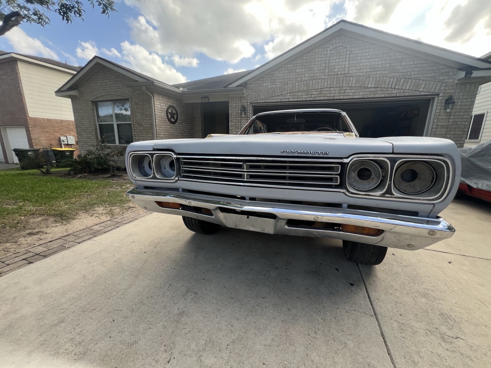 The 1969 Plymouth Roadrunner is a classic car that is original and has been owned by the current owner for 2 years. It is a grey color and has a mileage of 100,000. This vehicle is in need of work and is not driven regularly, making it a project for a car enthusiast looking to restore or rebuild a piece of automotive history. Vehicle Details I have a 1969 plymouth roadrunner for sale. Car was a 383 auto car in Honey bronze metallic. Have all glass aside from the front windshield, and all chrome, windows work. also comes with front b body seats that need full restoration. Car will need minimal rust repair, is very solid and a great start for someone to finish. Dash vin, fender tag, core support, and trunk gutter numbers all match. Car will come with bill of sell and have trhe paperwork showing vin has been verified as clean b y the sheriffs department and can get a title. feel free to contact me with any questions at 210-367-0288. Also have a complete running drivetrain out of a hellcat with the auto trans, and ecu for an additonal charge |