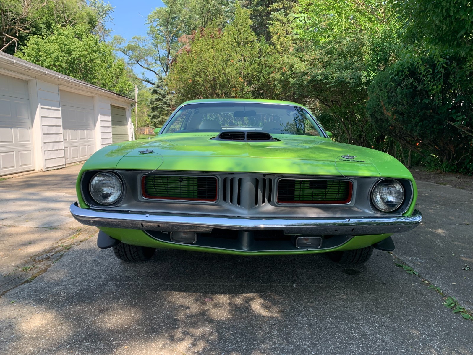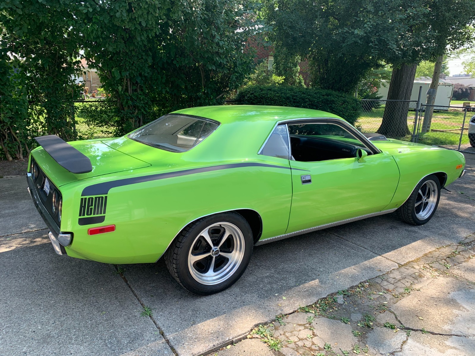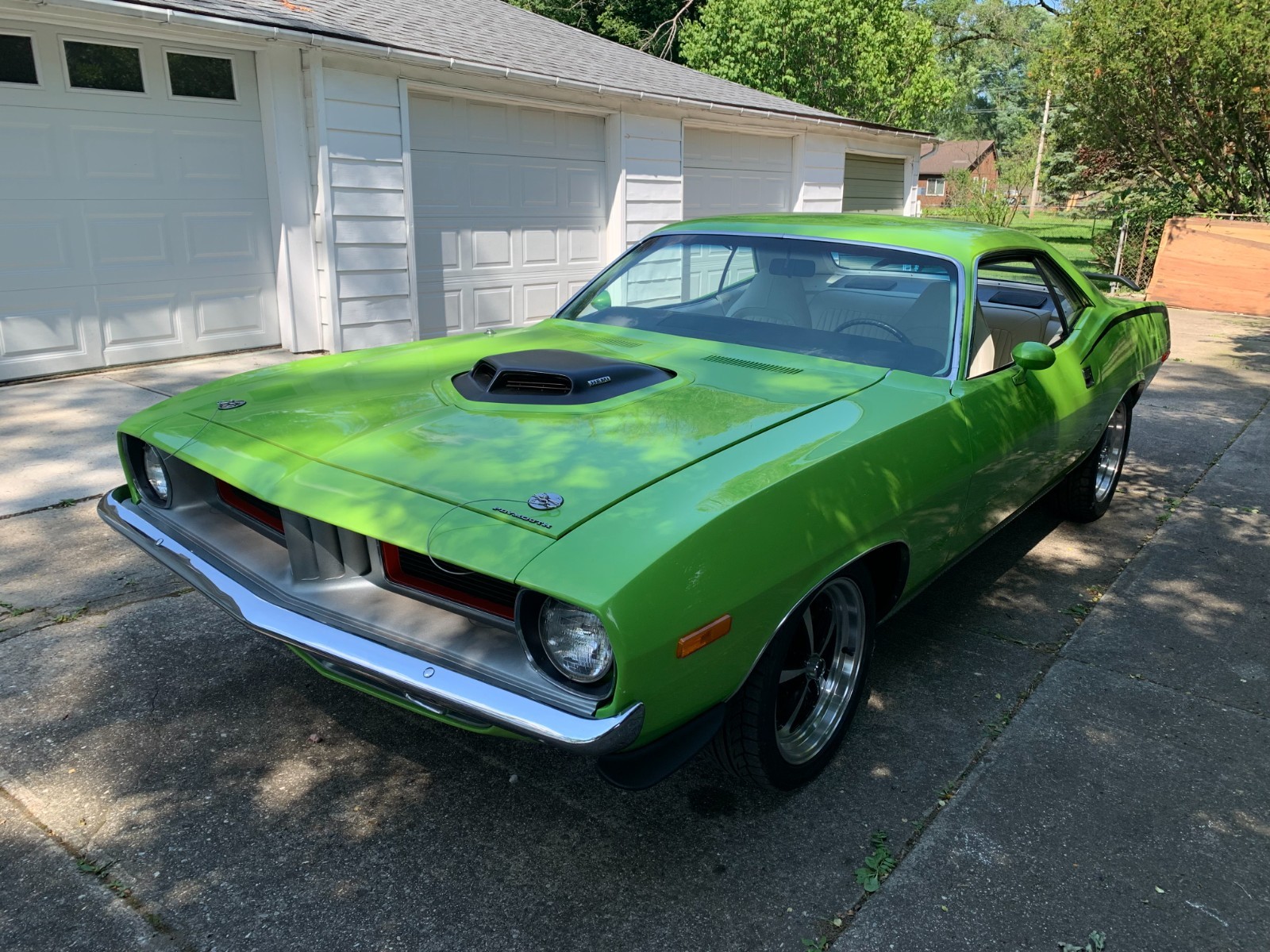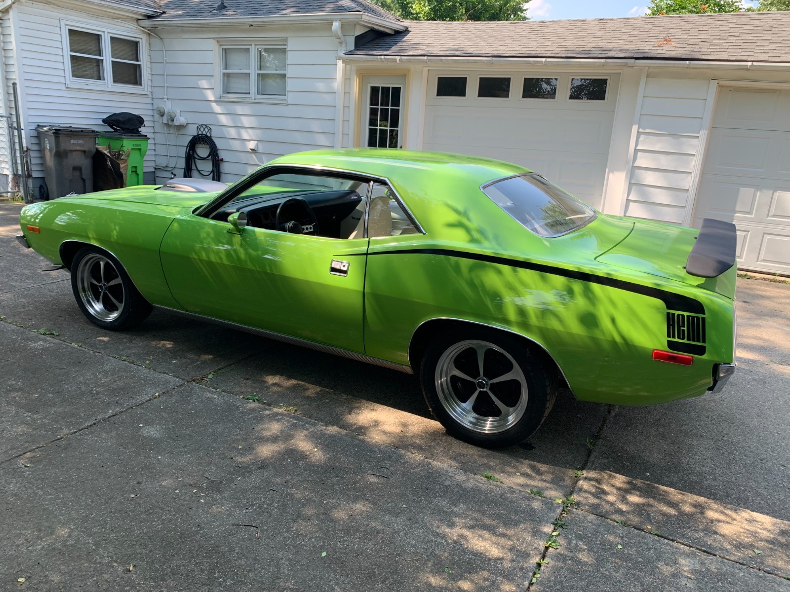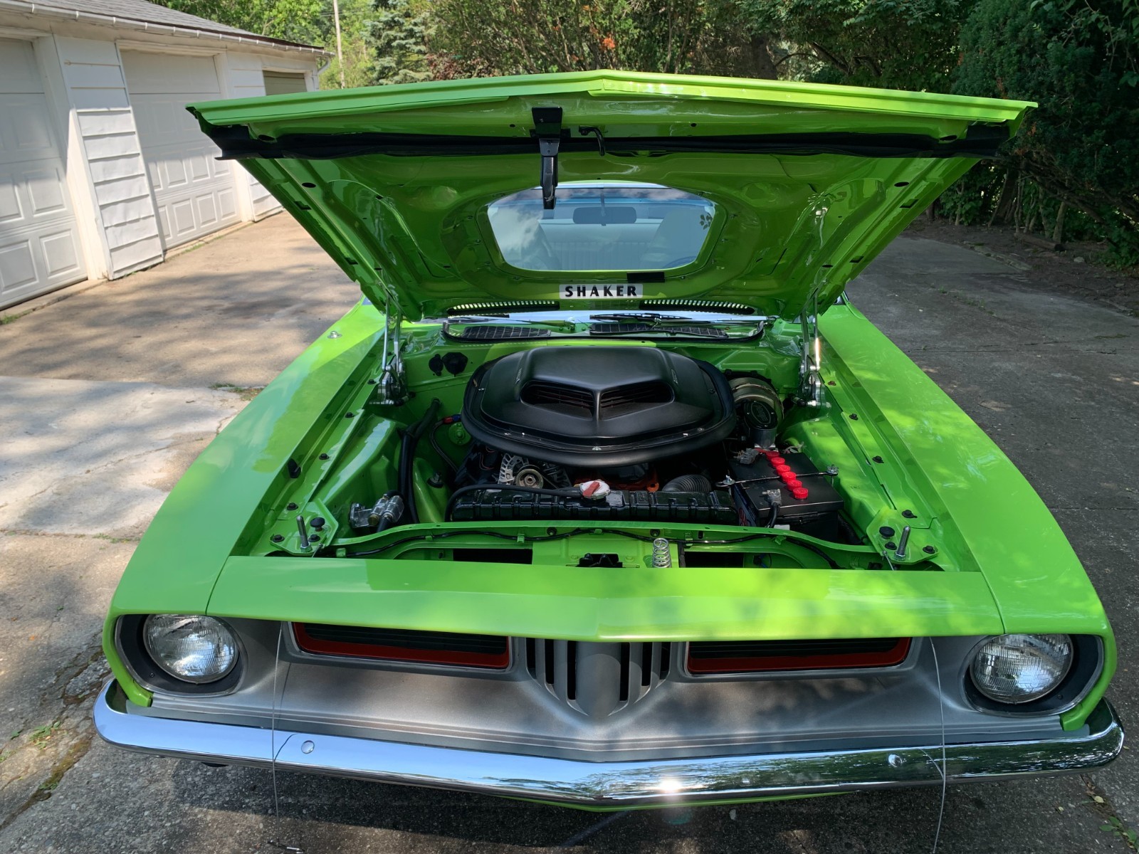 • Professional no expense spared Restoration.• Nice blend and balance of modern mechanical components and maintaining the original classic styling look.• Modern Hemi aluminum head crate engine with 2X4bbls dual quad carbs!• Great looking iconic “Shaker “ hood w/functional cold air induction system• Newer HD 3 Speed Torqueflite Automatic transmission with pistol grip shifter in console.• Upgraded "fast ratio" Power Steering System• Upgraded Wilwood power disc braking system w/ cross drilled + slotted rotors• Beautiful Mirror finish Limelight Pearl Green paint with black callouts show waxed and detailed to a mirror finish• Great looking Front & Rear Spoilers with Lower Rocker "Gill" Mouldings• Beautiful Chrome Bumpers, Sill Mouldings, and Stainless Mouldings throughout• Chrome factory style Hood Pins and Billet Hood Hinges• Great looking factory white bucket Seat interior with factory console• Custom white face gauge dash with Gauges for all the engine vitals• Newer interior including Seats, Door Panels, Carpet and Headliner• Period correct 2 spoke “Tuff”-spoke steering wheel• Pioneer digital sound system with hi fi speaker system• Show ready detailed engine compartment and undercarriage throughout• American racing Magnum 500 replica 17" alloys w/ BFG G force T/A's and Posi Rear End.• Great sounding Polished dual exhaust system w/ correct 'Cuda tips.• Quality fabrication and installation of all custom parts - nice build.- This is how to buy a great looking and great running and driving muscle car with a nice stance.- I'm a private seller not a dealer and own the car so feel free to come see the car in person if your local and just call me to setup a time to view. Mileage listed is what is displayed on the odometer and I do not know the actual mileage._Car is Sold in "As is Where is" Condition. Buyer is responsible for shipping or pickup of vehicle and I can assist with loading if needed.- Please Note: I do have a small bank loan out on the car through my bank and the Title has my name and bank as secured party on it. I will need to pay this loan off with partial funds from the sale of the car to get the release of Lien for the title from the bank once loan is paid off. I can work with you through this process on how best to securely handle the sale, loan payoff, and release of lien on title to complete sale to you.- Any inquires or additional information please email me or Contact me Chris at 586-596-0346. Thanks for looking.