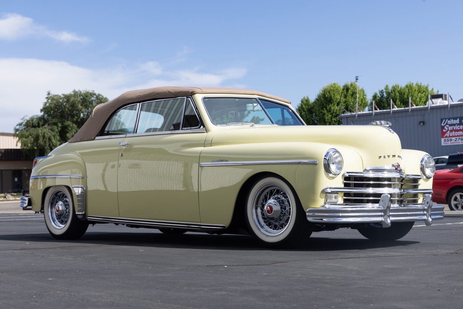 This 1949 Plymouth Special DeLuxe is a restored vehicle. The owner has had it for 5+ years. The vehicle is drivable and is mainly used for car shows. Vehicle Details 1949 Plymouth special delux convertible car is 9 out of 10 complete ground up build. Fatman Mustang 2 disc brake front / ford 9” rear all chassis powder coated and under car painted with undercoating. Powertrain is GM ram jet 350 fuel injected with turbo 350 auto trans. Body & pait is 10 show quality taken down to metal when refinished.real leather interior vintage air conditioning this car drives like a new car and is highly reliable. Over 100k invested must sell can no longer use this car due to health reasons. Choice of 3 different sets of wheels |