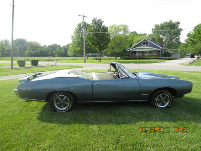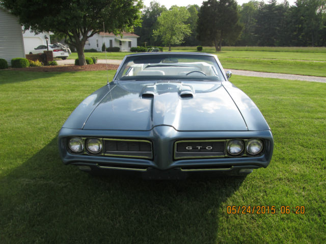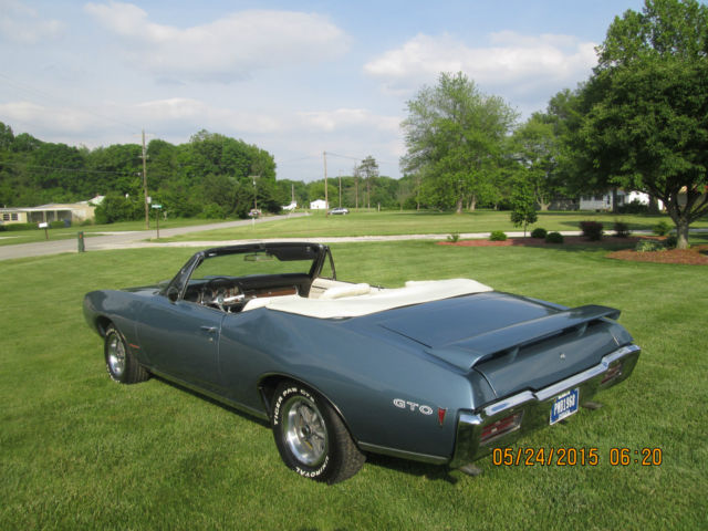 Hi, bought this car in January of 2011. It was bought by a good friend mine off of Ebay,Probably about 1 year prior to me buying it.The car was Canary Yellow when I bought it. It should have been Aleutian Blue originally.We both thought this was a decent body that would make a easyRestorationProject. Boy were we wrong!! The whole car had some very well hidden body work. I had a good friend of mine who has done body work for year, completely fooled. I know this is much more common a problem then we would like to face. So I will try todescribewhat i had done at a very Well respected Body Shop in town. This took a little over 3 years to complete, nd unbelievable amount of money and Patients! First Ill start with the drive train, he motor is number correct to the car,as well as the transmission and Rear end. There are a couple of things I know are notcorrecton the motor.TheCarburetoris a Elderbrock(polished)replacement for the Quadrojet. The distributor is a Malloryelectronic. I put on new Ram Air exhaustmanifolds, ear correct just for performance gains. Everything else I believe it right. I do have a period correct Quadrojet that I have but have not put on yet- that will go with the car.I just installed a new Clutch Pressure plate,and Throw out bearing last week. The bearing was growling so I replaced it all while I was there. The interior was originallyBlack- I changed it to the Year correct Pearl White. I thought it looked so much betteragainstthe Blue exterior. Every piece of the interior is brand new, oam and seat cover,Console,Door panels,arm rests,emblem, handles - door and windows,The carpet and padding. Iwasn'treal happy with the way the carpet fit. It was for a 4 speed ca, but therestorationtook so long it was kinda hard to complain to themanufacturer. The carhadafter market gauges that work fine, he tach does not work, m assuming because of the mallory Distributor. I did install a new printed circuit for theinstrumentcluster while it was removed.The fuel gauge did work when it took it to body shop but dosn't work now.I know it has to be a wire not hooked up,when they removed it for body work. Here is a list of what I can remember what I had replacedconcerningsheet metal. This was all purchased at either -OPGI- The Parts Place-Ames,or other Pontiac retailers.1)Hood2)Both Doors3) Both Quarters .4) The panel that is in between the trunk and top.5) The entire Truck pan6)The panel the truck lid mounts to and also goes to trunk pan7) Inner and outer wheel wells REAR8) Fire wal, ute, upper- wiper tray area, llwindshieldpillars9) Floor pans Both sides front to Rear10) Fenders, oth sides11) Inner wheel wells FRONT12)Inner and outer lower rockers13) hoodhinges,both sides14) The outer door handles, indshield chrome,rocker moldings,15 GTO emblems for the fenders and Trunk, s well as the interior door panels16) Front turn signal assemblies on Valance panel,New chrome on Valance panel.17) wheel well chrome x418) Rear spoiler,Judge style but I really liked theappearance19)Rear coil springs All of the cars parts were painted off the Car,jams and fire wall weresprayed. Then Assembled and resprayed and cleared. Sandedre-cleared-Buffed .The car is now the original ALEUTIAN Blue its was supposed to be.I have looked at Hundredsofthese GTO's since I have owned this on, and I believe this is one of the more rare colors that was put on them.I'm not a restoration garage-Just a guy who bought a car that turned into a UNBELIEVABLE project. Ididn'twant to cut corners, r put bondo all over this car. I could have useda lotof the old parts but decided to use new parts in all my purchase, he finished Car isABSOLUTELYBEAUTIFUL. I am only selling this car due to divorce** I don't have t, and it really sucks to know that when I do sell i, I will Probably never have anything this nice again. But I could use the money for other things. I also have a 1966 Lemans/GTO convertible. If this 68 sells I will keep the 66,If not -I will sell my 1966. Imight be interested in a partial trade for a 70-72-GS/ or 442 or 68-72 nova, don't want to take on any projects,so nice cars only.Thanks |
