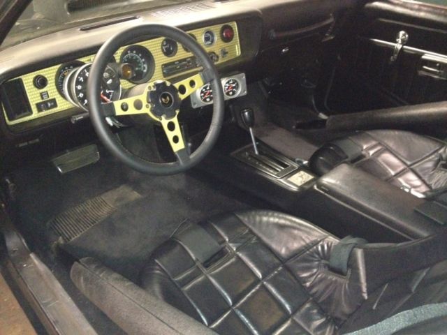 1978 Trans Am same owner for last 18years. Black paint about 7 years ago -- Dupont Centari with clear coat VFN 4" fiberglass cowl induction hood 6 point roll cage Race seats with 5 point harnesses Hurst Hatch t-tops Engine: 474 Pontiac (455 bored and stroked) 12:1 compression -- About 500 -- 600 hp Eagle H-Beam rods -- 6.800" long Custom forged pistons Cryo-treated crankshaft Tool Steel 4-bolt main caps Solid lifter cam Edelbrock Aluminum heads -- Ported with oversize valves installed Harland Sharp roller rockers Fabricated aluminum valve covers Canton road race oil pan Fluid filled harmonic balancer Edelbrock RPM single plane intake Holley 850 carb Dual fuel pressure regulators Remote oil filter with oversized racing filter (about 2 quart capacity) Moroso oil accumulator and electric solenoid to activate it MSD pro billet distributor and 6AL box with rev limiter and in car timing adjustment SFI approved flex plate High torque aftermarket gear reduction starter (I think it is a CSR brand) TCI 3000 stall converter TH400 trans with upgrades Factory Ratcheting shifter Custom drive shaft with 1350 series u-joints and safety loop Ford 9" rear end with 3.73 gears and spool Strange custom axles 4 wheel disc brakes 5/8" Aeroquip fuel line from tank to carb Fuel sump in tank to prevent fuel starvation on launch much more! over $30k invested in this car. i also have the factory gold bird decals and the gold stripe decals. also include the factory seats. new $300 gold leather wrapped steering wheel (factory style). let me know if any questions! thanks. car runs mid 11's as is.. all on motor.On Jul-30-15 at 17:24:24 PDT, eller added the following information: thanks for all the interest, uestions, tc. i figured i would add a couple notes to the description. the sticker kit does come with the car as well as the factory seats. as with all hotrod cars, here are a couple things that should be pointed out. the car was going to be even more of a drag car, o there are no wipers installed, he e-brake is removed, tc. the car does have a couple things here and there, ut overall it is a super car. built right and runs/drives solid. please let me know if there is any other questions or other pictures needed, tc. i'm adding a couple others tonight also. thanks. On Aug-01-15 at 19:49:32 PDT, eller added the following information:if any of you are close enough, ome check out this car. if you hear it, ee it, nd drive it, ou will see what it's all about. sounds great and revs quick. other than the cowl hood, lends in pretty well, ut goes like crazy. built in air/fuel gauge in the dash and a low oil light also. fits in the dash like factory pieces. |