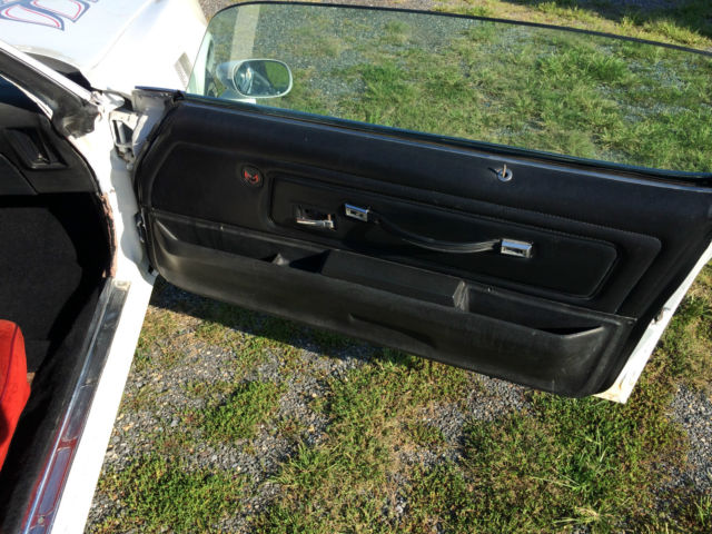 | I have for sale a 1977 Trans Am in white with red interior. The T/A has the 6.6 with a auto trans. The car has newer paint and looks and runs Good!! The T/A is free of any rust as it came out of a southern state, he car has damage to the drivers side T top as a tree branch hit it and has broken the glass..It will need a new one They Are the Hurst tops.. The car needs the interior done the door panes are on the week side and a few of the trim panels and head liner. This T/A is a Running and drive light project for some one or a father and son project!!!! For all out of state buyers i can help with shipping at buyers expenses as we have shipped cars world wide.. For further infomation you can call me @ 1-443-871-0232 |