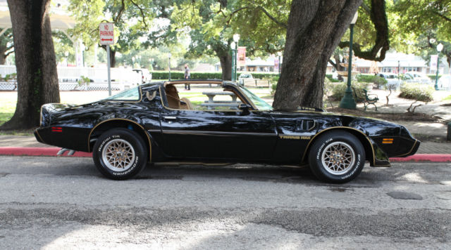 My dad and Iare avid car collector's .We are honest and upfront with everything on the vehicle's we sel, LEASE CHECK OUTOURFEEDBACK !!!!We take that VERY serious aswe know thebad feeling on being burned on a purchase. I list thecar as best as possible and tell you the great things as well as whatbad things the car needs so there is absolute no surprises. I have been told thatwe are too critical, owever better safe than end up with a unhappy buye, hat will have a bitter taste before they even get to enjoy the car. The pictures of the car were taken this weekend and are not enhanced to make the car look better. As this is first time out of storage in a year. Up for auction is a beautiful 1979 Pontiac Trans Am T Top inBlack and Gold. Mutable show winner, uper nice and clea, ever been driven in rain since we have had it. These cars are becoming significantly harder to find especially in great shape. The car has the original factory build sheet as well as original sales brochur, wners manual to be included with its sale. Wepurchased the carright at 2 years ago from the previous owner who spent tons of money on this car., ith New paint, resh engine, all drivetrain has aprox. 3000 mile, ileage is supposed to be correct original miles,Carhas been garage kept non smoking car . We have put less than 200 miles on car, nd has been in stored for the last year covered in a warehouse. The previous owner had the following items done.
