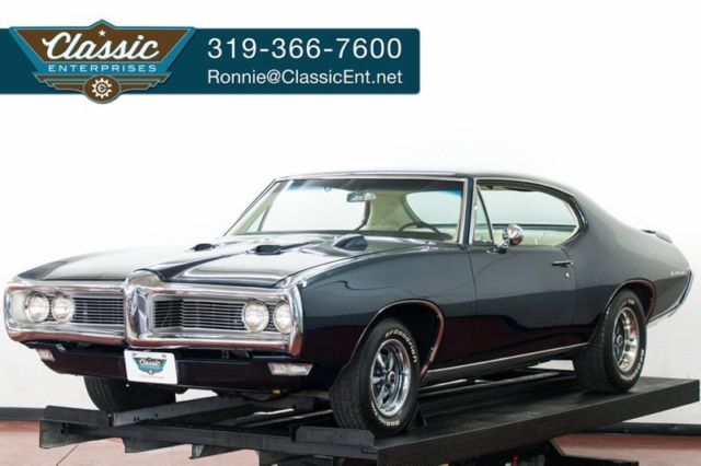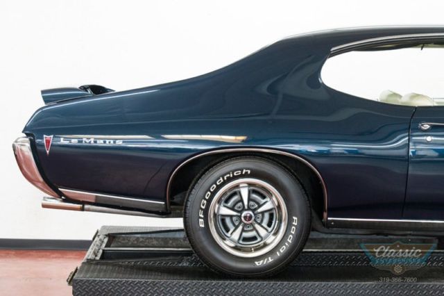 1968 Pontiac Lemans Sprint 6 Description John Z. DeLorean was a true innovator. Pontiac's chief engineer and later general manager, eLorean was responsible for launching the GTO, icking off the whole muscle car movement-and the rest, s we say, s history. But few enthusiasts are aware that he was also the brains behind the development of Pontiac's exclusive OHC-6 and the OHC-6 Sprint with its "first for the U.S. market" belt-driven overhead camshaft. DeLorean sought to inject a sophisticated European feel into Pontiac's growing Tempest and Le Mans intermediates, o the new OHC-6 became the standard engine on these models from 1966 through 1969, s well as for the new Firebird introduced in 1967. This 68 version of the Lemans is probably the nicest one in the country today. The attention to detail is phenomenal and the quality of the fit and finish is just as outstanding. Powered the correct OHC 6 with a 4V carb and 3 speed transmission and finished in its original colors with a GTO hood (flat hood is available) and tach added it looks and runs super. This is one of only 250 built in 1968 so you will not meet yourself at a car show. Features Smooth 250 CID Pontiac OHC 6 with Quadrajet 4V carburetor Fully Synchronized 3 speed Transmission with Hurst floor shifter Safety Trac rear end with 2.56 Gears GTO hood with Tach mounted 120 MPH Speedometer with 46k showing on the odometer Dual Exhaust with performance mufflers and a very cool note 14 and 15 inch Rally II Wheels with Center Caps and Trim Rings Excellent BFG 205/75R14 front and 255/60R15 rear Raised White Letter Tires Finished in correct and original Aegena Blue Code EE Correct and original Parchment Code 224 Bucket Seats with Full Console Highly Detailed Engine Bay and Trunk with Mat, ack, nd matching Rally Spare Full factory ventilation in the dash AM Radio Manual Drum Brakes Safety Guard Padded Dash and Sun Visors Front and Rear GM Seat Belts
