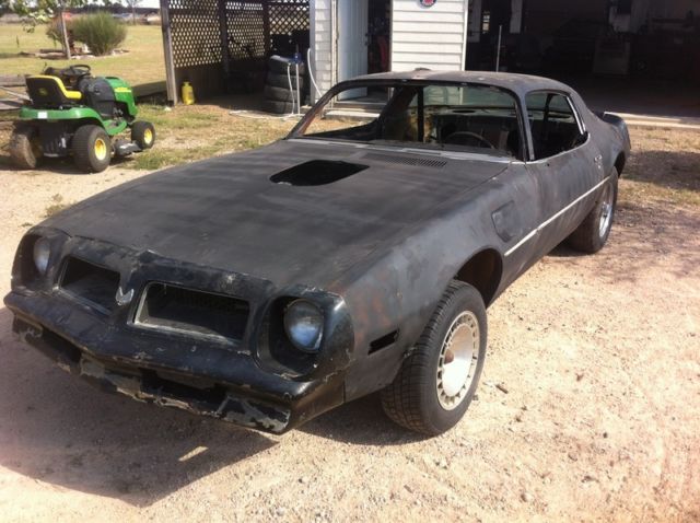 1976 Trans Am LE. Rolling Chassis. No Reserve. Drivetrain,interior, round effects, indshield and side glass kept by second owner who I purchased from in Tulsa Ok 7 years ago. Oklahoma car all its life. Very solid and very straight. The chassis is laser straight. Needs front toe-boards and small patch needed on left lower front fender and right rear quarter starting to bubble. Highest optioned LE I have ever seen. Wiring harnesses intact. Rear defrost window intact. Door bushings worn out. I could not load all pictures with ebay limit. Call or text for more info. This car can be stored by me as long as buyer needs. Pay immediately at auction close. Disregard eBay payment instructions listed on this auction and pay by cash, ertified check or paypal immediately at auction's end. Will cancel all bidders with less then 10 feedback. Last two cars listed on ebay were by won by non-paying members so my tolerance for such behavior is low. US/Canada bidders only. Thank you for looking. Steve 806-433-7469
