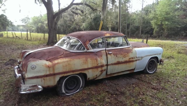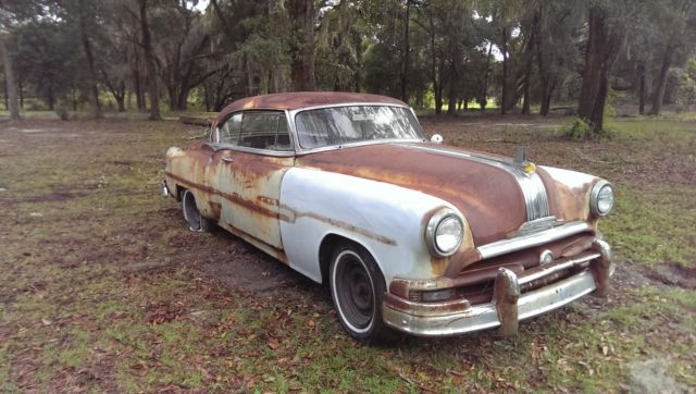 | 1954 Pontiac Coupe project car.Engine does turn over we have not attempted to start it, ery restorable car or Rat Rod it.Frame is in good condition. |