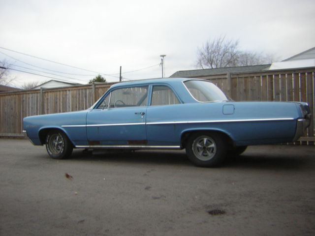 | Here is your chance to buy a rare 64 Strato Chief (US Catalina) 2 door post car (2 Door Sedan) just like the ones raced under the Royal Pontiac banner back in the 60's. Drop in your V-8 and go cruising. Currently has 235 C.I. 6 cyl, bbl, sped manual on the floor. Needs work but makes for a great winter project. These sedans are rare and hard to come by. Can assist in delivery. |
