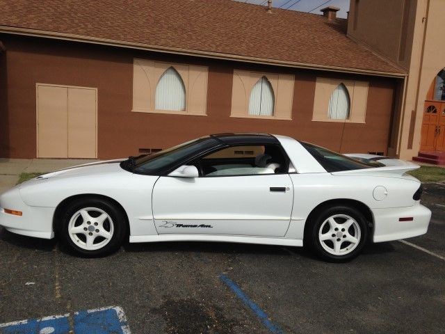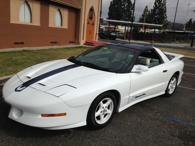 | 25TH ANNIVERSARY EDITION. T-TOPS. ALL NEW :SEATS. TIRES. A/C. BRAKES. COMPRESSOR. ALTERNATOR. WIRES & PLUGS. JUST TUNED UP AND FRESH OIL AND FILTER CHANGED. BEST OFFER TAKES THIS CAR HOME. BACKGROUND ON THIS LIMITED EDITION TRANS AM A 1994 Firebird Trans Am . performance coupe was a very awesome car. With adding the 25th anniversary package. which included a 350-cubic inch LT-1 Corvette engine. and custom interior and wheel color package. made this vehicle one of the fastest American production cars in 1994. The 1994 Pontiac Trans Am came in both standard coupe or T-Top body styles. The original retail price for this model was $30. 00. 00 This is a real collector car. Famous by smokie and the bandit movies. Not made any more. this car will go up in value. This car has been completely inspected and has any older parts replaced with brand new ones to make this a car ready to drive cross country and back!. We have just put 4 new steel belted high performance tires all around . New A/C compressor. New Alternator. New factory front bucket seats . New brakes on the front. Tune up. Oil change. Timing. New distributor and spark plug wires. New rear hatch shocks to keep the hatch open. This car runs perfect with no leaks . Can drive anywhere right now. We have done all the work so you don't have to do anything but drive. WE WELCOME OFFERS AND THIS CAR WILL BE SOLD TO THE HIGHEST OFFER . Additional Power Outlet(s) Air conditioning Audio-Equalizer Audio Sound System Brakes-ABS-4 Wheel Floor Mats-Front Fog Lights Intermittent Wipers Leather seats Mirrors-Pwr Driver Mirrors-Vanity-Driver Mirrors-Vanity-Passenger Power Driver Seat Reading Lamps-Front Remote Trunk Release Roof – T-Tops Roof-Sun/Moon Security System Steering Wheel Stereo Controls Steering Wheel-Leather Wrapped Tilt Wheel Wheels-color coded to the body On Dec-09-14 at 17:18:23 PST. seller added the following information:IF YOU LIVE IN S. CALIFORNIA. WE MAY BE ABLE TO FINANCE YOU ON THIS CAR. YOU NEED A DOWN PAYMENT. nbsp;PROOF OF JOB . PROOF OF WHERE YOU LIVE. ABLE TO BUY AUTO INSURANCE . nbsp;CONTACT US BACK IF YOU WANT THAT OPTION. |