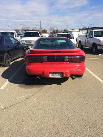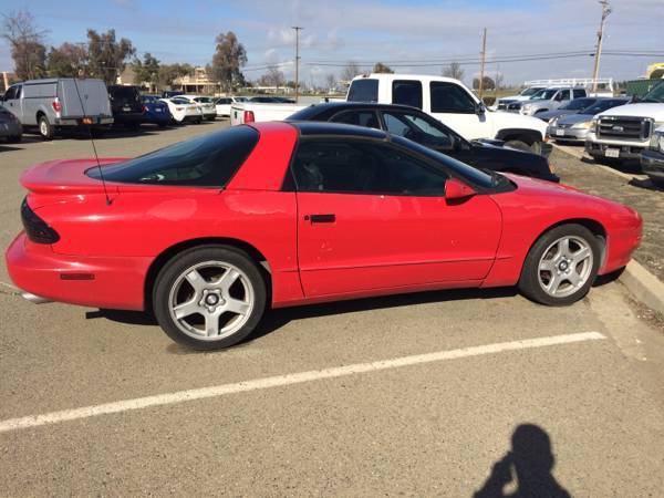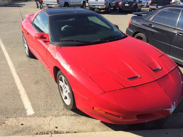 I have for sale a run and drive 1994 Pontiac Firebird equipped with an LT1. It has multiple performance modifications including: BBK ported throttle body, BK shorty headers, &N intake, .73 gears, MR welded subframe connectors, MI panhard bar, MI torque arm, &M Transmission shift kit, C delete, rilled and slotted rotors and ceramic pads. It has staggeredCorvette wagon wheels.Clear coaton passenger side is fading. Front bumper paint is chipping. No headliner. Leather seats inokay condition. No rust.Speedometer is reading 25% faster due to new gears in rear end. Alpine deck with aftermarket speakers throughout. Needs fuel pressure regulator (have one included). Service engine soon light is on due to a dirty mass air flow sensor, cleaned it and the car started running well again I just do not have and obd1 reader to reset the light.