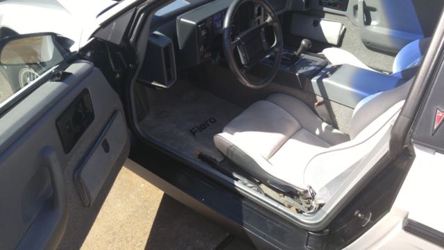 1986 Pontiac Fiero SE Coupe in polar silver metallic with gray interior. Gorgeous color combination on this model. Comes equipped with a 4 speed manual transmission, ir conditioning, eating, ower windows, actory sunroof and adjustable seats, assette FM/AM radio, nd customized Fiero interior mats. Also includes the original owners manual, riginal warranty booklet, nd spare tire. Lastly very low mileage (43,187) All parts replaced with original Pontiac / GM parts. Vehicle is kept inside garage with car cover. Reason for sell, wner is in the military and will be going overseas. Vehicle just recently has new belts put in, ront shocks, indshield washer motor and new oil sensor. All receipts are with the vehicle to show great care and attention to detail. A very presentable car / mechanically sound / runs great. Good luck with the bidding, his is for sure a collectors find.