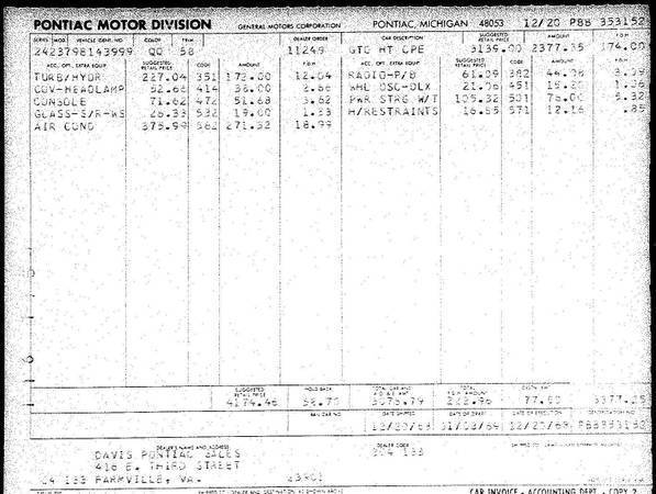 | Pontiac GTO 1969 400 Pontiac with 400 turbo and Safe T-track 3.23 all original car runs and drives excellent. 400 has new rebuild .30 over pistons, stainless valves, high output, high compression 92 CC heads, dominator Holly intake, and Edelbrock carb. New frame off restoration new bushings, new brake lines, new paint, and new tires. It is an original AC car with new HVAC New Gas tank and lines NO RUST. super rare pure muscle car 7OI799O975 |