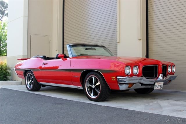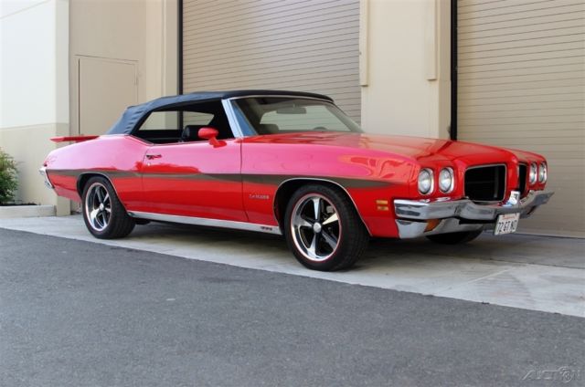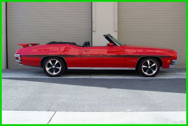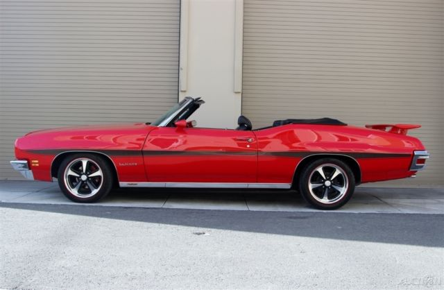 | Just In TIme For The Warm Weather This Beautiful Droptop LeMans Sport is Ready to Cruise. 350 CID. V-8 Edelbrock Air Cleaner Edelbrock 4BBL Carburetor Edelbrock Aluminum RPM Intake Factory A/C Headers Dual Exhaust with Flowmaster Mufflers TH-350 Automatic Transmission. Power Steering Power Front Disc Brakes. Bucket Seats Hurst dual gate auto with center console. Billet Steering Wheel. Factory Tach Auxiliary Oil and Temperature Gauges Power Convertible soft top. Factory Side Graphics Color Coded Sport mirrors. Rear GTO spoiler 17" Rally II Wheels |