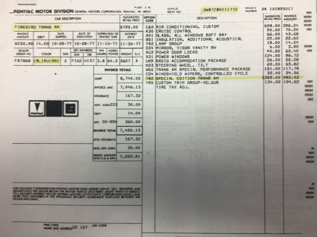 1978 Trans Am SE Y82 PHS No Reserve