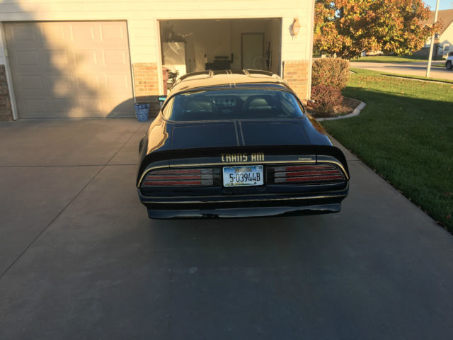 I bought the car for my wife and she doesn't like it. I bought it from a dealer and don't have any history on the car. It is a real Y82 SE as shown in the PHS documents. It is not the original motor, but it runs very good. It has an Edelbrock intake and a small cam. I recently drove it on a 120 mile trip with no problems. The interior is very nice and the original radio works. The paint is not show quality but looks good. The tires are fairly new. It has the original T-Top bag in the trunk along with the spare tire and jack. call Phil 620-242-7775