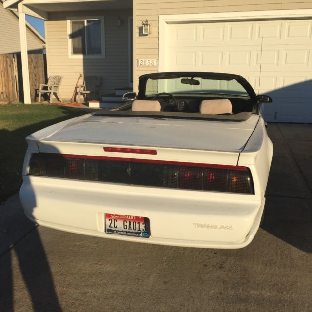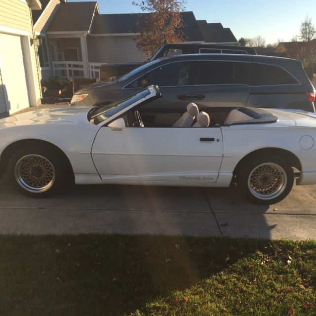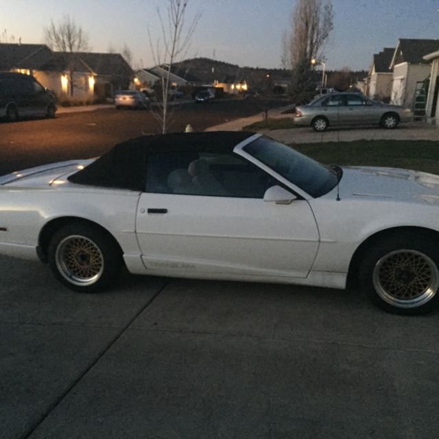 | I have a 92 trans am convertible for sale. It runs and drives good has the original 305 tpi and tranny that came from the factory. It has power windows locks tilt cruise. The car is in good shape for its age but does have some dings and the paint is fading and cracking in places. The interior shows normal wear for its age. The top is functional but will eventually need replaced as it has been patched in a few places. Will need the trunk hatch reattached it's not the auto hatch so should be easy fix. This is a very rare car as only 600 trans am convertibles were produced in 92 and the bodystyle is a two year only bodystyle. If your looking for a good restorable trans am convertible that you can drive while you restore this is a good candidate. Any questions call or text 541-639-2727 make an offer |
