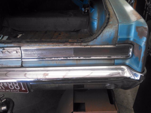 | PHS documented 64 GTO. Original 4bblengine and 3:36 posi rear.Am told Muncie 4-speed is a 67. Paint is original.Engine starts and runs but car is not driveable due to bad brakes. Some damage to passenger door and rocker molding. I have a good molding to go with car. Frame is good (not rusted thru anywhere). Body has typical Midwest rust.Odometer shows 59,700. Any questions or for more pics text or call 636-222-0289. |