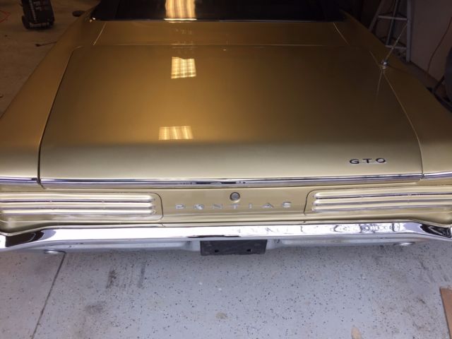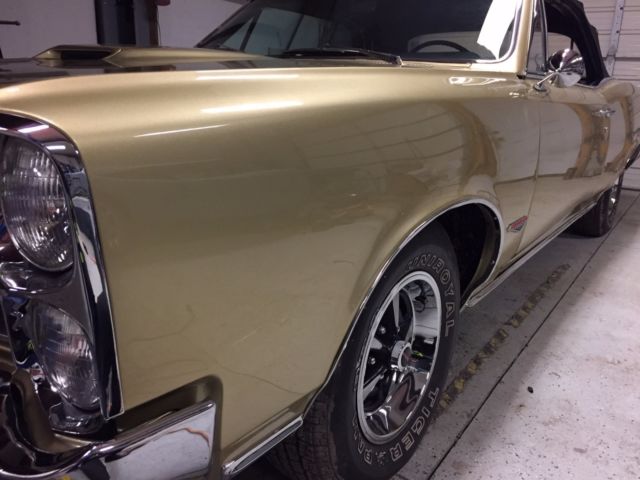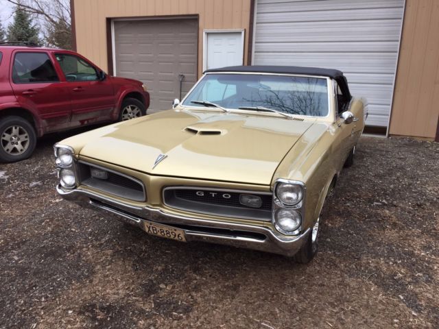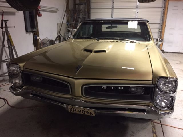 Hello everyone, up for sale is my 1966 GTO convertible. The car belonged to a good friend of mine since 1990 and has been stored in doors the entire time he owned it. I bought the car last year and finished assembling it so that it could be back on the road. This is a real 242 car with the original build sheet included. The engine is a 400 block, which i have all the information for by the shop that built it. I went ahead and put an original tri power setup back on the car. The transmission is now a 400 turbo trans which is also rebuilt. Both the engine and trans have less than 100 miles on them. The bodywork on this car is beautiful. The car has had all the floor pans replaced, both quarter panels, wheelhouses. The hood is new and both doors and fenders came off of a rust free car. The whole body was stripped down to bare metal and epoxy primed, I have some photos of the restoration. The paint is metallic gold, which the car came from the factory with. I had the painter add some metallic silver in it and the end result was great, the paint is job looks very straight. 95% of the chrome is brand new, any good trim was taken off and sent to an expert polisher that I know. Almost all of the nuts and bolts on the body are brand new. The car also has new duel exhaust all the way from front to back with flowmaster mufflers. Overall the car is beautiful, you wont be disappointed when you see it in person. I have the PHS report for the car, as well as the original build sheet and over 20k in receipts. I have a clean green title in my name. Please call or text with any questions, (248)-212-2724 I can also provide a video of the car upon request.