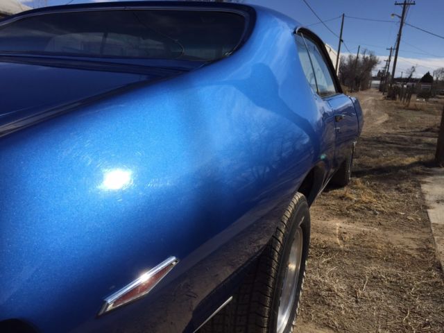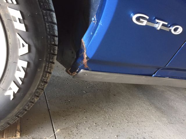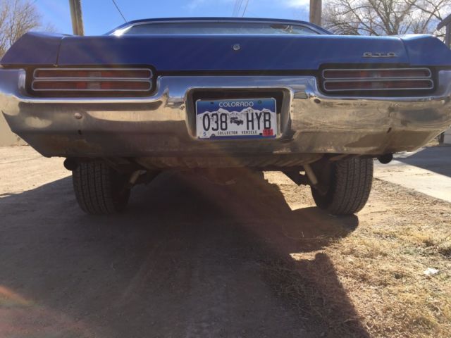 Low Reserve!!! 1969 Pontiac GTO with original 400ci engine and correct YS TH400 Auto Trans. A true 242. Has power steering, but no power brakes or AC. Engine looks to have been rebuilt at some point (the last 5 or 6 of the Vin have been re-stamped on the block, but the original stamping is still legible and is the matching engine for the Vin. Mileage shows 95,442 but I do not know how many times odometer has rolled over I have owned the car for nearly 20 years and it has been either garaged or under a carport with a cover. Mechanically: The car starts, runs and drives well. There are some electrical issues such as a loose wiring harness that goes down into the block and some issues with the wiring harness throughout which affects the lights on the car. A new wiring harness would fix those issues. The exhaust pipes behind the exhaust manifold will need to be replaced eventually as there is a small exhaust leak up towards the front of the car that can be heard. There is a slow oil leak that looks like it is coming from around the oil pan, likely needs a new oil pan gasket at some point. All fluids have just been replaced as well as new air filter, oil filter, battery, and tires have less than 150 miles on them. I replaced the carburetor 3 years ago with a 750cfmEdelbrock 4 barrel. Aesthetically: Cars original color was gold ext./ gold int. In 1998 I had a body shop paint the car a medium blue with metal flakes. The body shop I used did not complete the highest quality work as there is paint that has cracked on the Endura Bumper, some chips on the black hood scoops, and they did not paint around the water channels of the trunk and engine compartments. (Gold color can still be seen). There is also some small scuffs in the paint throughout the car, and one small dent above the driver side rear wheel well.(See Picture with circle) The car looks to be rust free except near the front divers side wheel. I had a new tire put on back in 2000 and the shop over-inflated the tire. It blew while I was driving and a piece of rubber hit the body of the car causing the paint to crease and flake off. The rust looks to be superficial. (See Pic) Also up in the wheel wells, rust is just barley on the surface of the metal. (see pic). In the late 90's, I redid the interior from gold to black. Everything in the interior is period correct except for the steering wheel and the shifter. The Dash was fully stripped and remolded by Just Dashes in California back in 2012. The interior is missing head rests but I have the hardware for them. There could be some small chrome pieces here and there to finish the rest of the interior fully. The driver side window is missing a bolt that keeps it from sliding forward and backward in its track while rolling up. I replaced all the weatherstripping throughout the car 3 years ago. Overall this car is in good to great condition. It always turns heads and everyone loves the color combination. The 400ci engine has a ferocious sound even with the exhaust leak. In my opinion, this car is at a perfect crossroads. It is still mostly original and could be restored to factory making it a trailer queen. It could easily be modded to a touring or drag car, or with a new wiring harness, would be a great daily driver. I have made all efforts to list everything about the car that I remember... Please feel free to contact me about any other questions you may have. |