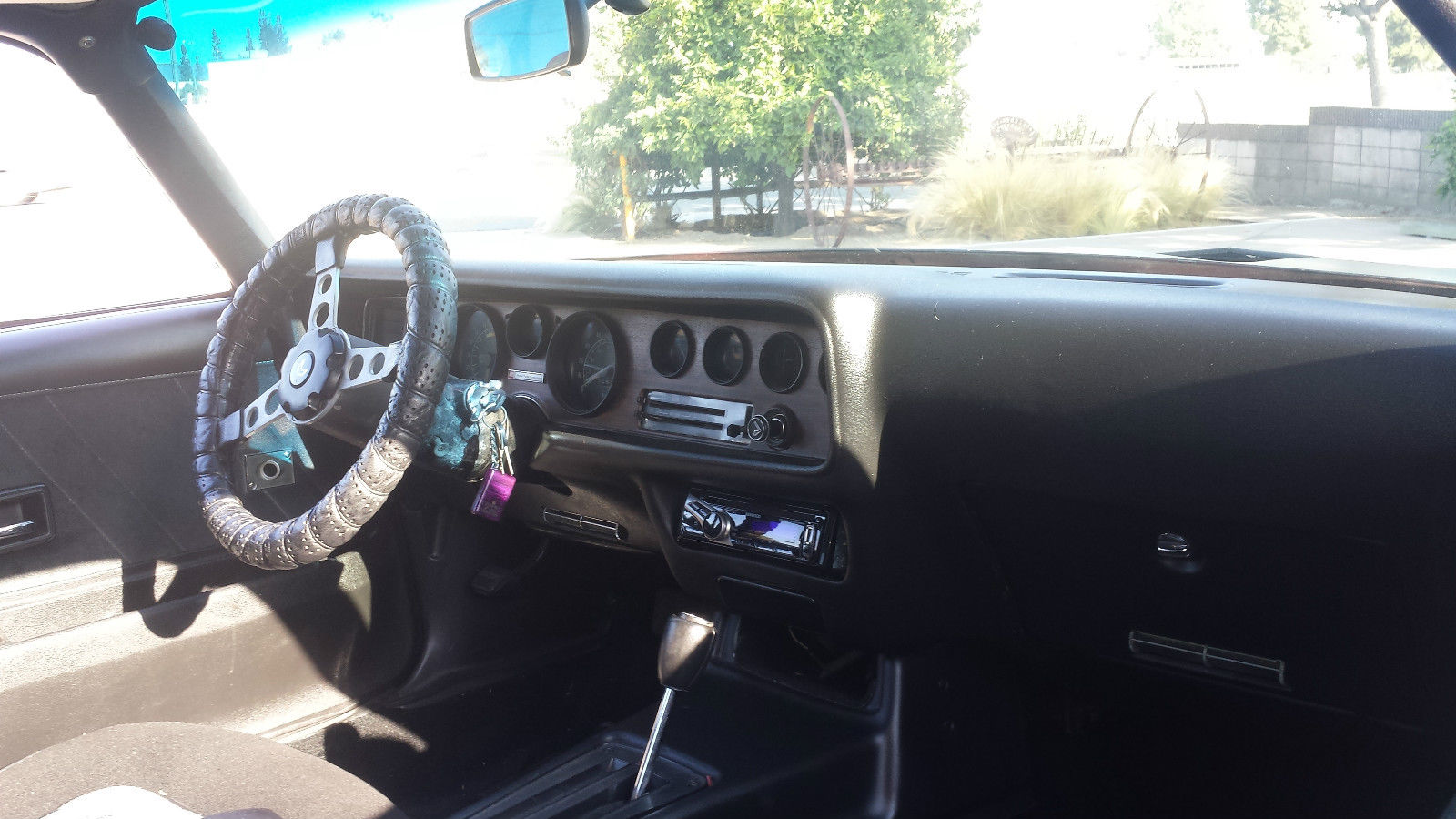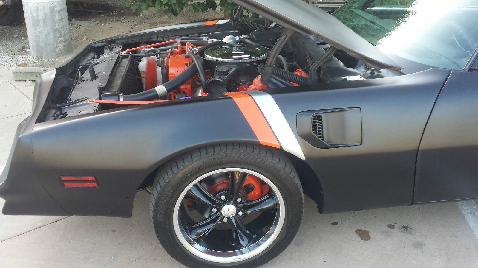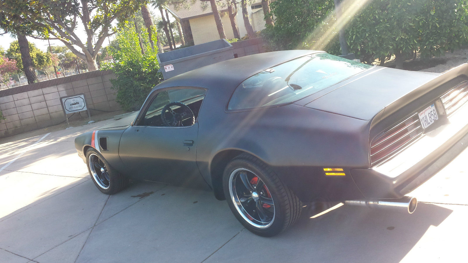 | 1977 Pontiac Trans Am V8 AutomaticNew satin/stealth black paint jobRe-Built original engine New Black and gray custom interior upholstery Seats. rugs. headliner. visors. seatbelts. rear seats. dashboardNew starter New door and trunk rubber sealsNew chrome side door steel platesNew springs. shocks. bushings. tied rod ends. New front/rear brakes. brake linesNew serpentine bandsBrand new "Boss" wheels and tiresRear wheels 255/40 zr18 Front wheels 255/50 zr17New custom Kenwood stereo New Exhaust chrome tipsPower windowsClean/slick Trans Am |