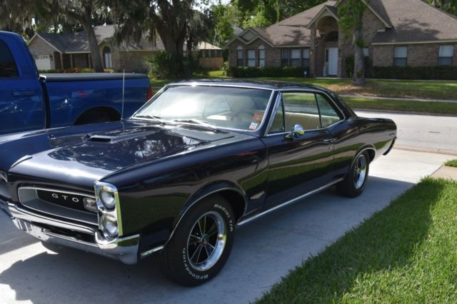 Up for sale is 1966 Pontiac GTO Tri-Power, 4 speed, WS block, air conditioned car. It is Nightwatch Blue w/Parchment Interior. It has new tires, including spare, air is new, Flowmaster mufflers new, new exhaust. Hurst M20 rebuilt 4 speed and New Hurst Wheels. Recent motor rebuild with mild cam. 355 Posi gears. This car has it's original floors and trunk pans. The underneath is beautiful. It is a true 242 GTO born a Tri-power YS automatic car. You will not find a finer car for the money. Runs and drives excellent. This car turns heads at every show I go to. Call me for more information or set up a time to come look at it(if local).CALL DAVE-386-679-1893 CELLEmail: hopp2@aol.com