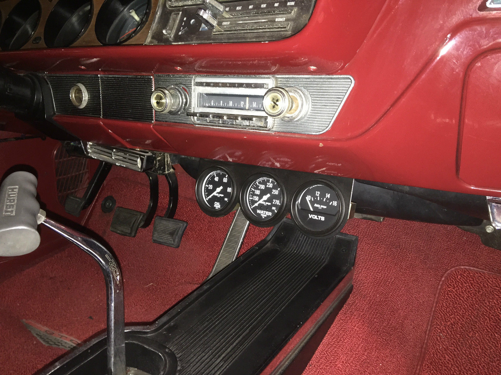 | This car is in Austin Texas. Jerry @ 512-422-8206. Buyer pays "shipping" or pick up here. This is a true PHS documented GTO. IT has been converted to Muncie four speed from automatic and originally came with a four barrel carburetor. Now a tri-power set up . It came with factory air which does not currently function. It is not a "show car" ($65. 00+)! It is a DRIVER. I have the original Rally Sport rims and trim rings and the spare also has red line tire and Cragar rim. The interior is in great shape and the headliner. sail panels. package tray and sun visors are recent replacements. Roof was insulated. The floor panels were replaced when the car was frame off preserved in 1999. The minor oil leaks have been fixed and the four speed has new seals and new reverse and reverse idler gears. This car has the potential to be "Show quality"! ****. |