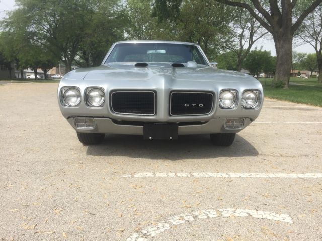 Pontiac GTO Judge . PHS Documented. Fully restored, #s matching 400 ram air III - 4-speed. 55K original miles. Excellent Palladium silver on original rust-free body. Underside is just as nice as the rest of the car. Runs and drives like brand new. Gardner exhaust Perfect original floors, frame and trunk pan. Mint black interior. Must see to appreciate. Call for more details. 773-750-1894 |