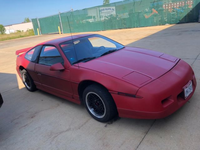 1987 Fiero GT this the six-cylinder it's automatic it's just been plasti dipped Matt red. Little Vinny approved features an automatic transmission all new wheel bearings front and rear all new brake pads front and rear all new brake calipers front and rear all new discs front and rear the inside is clean little dusty from sitting thinking. Stainless steel racing brake lines! car is ready to go brand new brake lines russel racing stainless steel brake lines brand new master cylinder it has power brakes upgraded master cylinder for additional stopping power also brand new sway bar links racing links this car is pretty quick it does have an exhaust leak you're gonna have to take it to the exhaust shop. Mobil 1 oil change synthetic Power mirrors work, power windows work, power door locks work has air-conditioning I know lotta people think it's a race car for sale but it's not Race Car it's a great sports car mid engine car it absolutely is a pleasure to drive it's fun it's quick and it's a cool car need engine sports car Fiero is the Fiero GT it was designed as a commuter car gets great mileage to great car to drive your choice of tires racing street tires or all seasons radials. You can choose one of the 2 sets of tire that we have here all season or racing tires.New door hinge pins too door closes like new!! No warranty as is where is sorry its old!Fiero for sale Fiero Gt