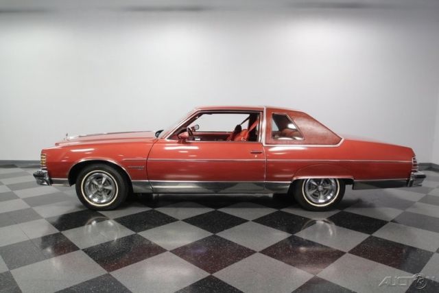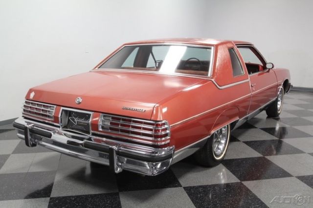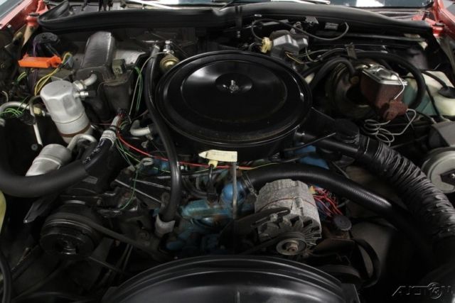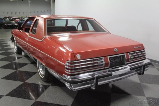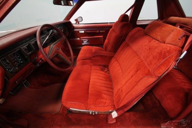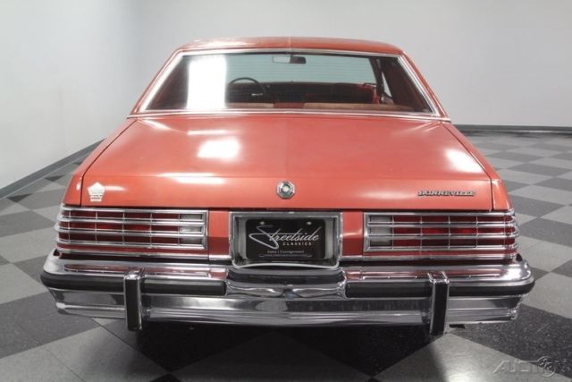 This big, beautiful 1977 Pontiac Bonneville Brougham is one of the best ways to be distinctive, yet unmistakably American - all in an affordable package. This survivor-grade coupe has everything you want from the 400ci V8 to cold A/C. This big coupe has big 70's style. It has Pontiac's cool Firethorn Red paint, and it's is original to the car. There's a nice balance of gloss and wear-in to instantly tell people this has been treated with care for over four decades. So it's impressive even before you tell them the car has averaged less than 140 miles annually! Since Brougham is a true premium designation, this one really gets the classic opulence right. That's why you have the rear fender skirts, full mirrored lower body panels, and a color-matched half vinyl roof. It's a total package that's complete, right down to Pontiac's Rallye II wheels. The handsome red interior complements the exterior color nicely. And such low mileage means little time to wear in the comfy velour. This red is also nicely matched on the door panels, headliner, carpeting, and three-spoke steering wheel. Because this is a full-size coupe, you've got room to bring up to five family and friends along with ease. Or you can fold down the middle armrest to give you a more individual luxury experience. No matter how many people are along for the ride, they will all do it in comfort. This came loaded from the factory with features such as a power seat, power windows, power locks, cruise control, and air conditioning. This is such a time capsule that even the AM/FM stereo with 8-track player is still cranking out the tunes. Pontiac's legendary 400 cubic-inch V8 has such an authentic appearance in the engine bay - right down to the decals. So it should be no surprise that this survivor coupe still carries its original motor. Topped with a four-barrel carburetor, it has the kind of power that allows this Bonneville to live up to its effortless cruiser image. This is backed up by the three-speed automatic transmission, power steering, and front disc brakes for the ultimate easy driving classic. This Pontiac comes complete with the factory build sheet, original bill of sale, dealer invoice, owner's manual, title docs, and maintenance records. There's even the window sticker so you can see all the key original components that are still on the car. Now you'll understand just how well this large coupe has been cared for over the years. You don't find cars that survive looking this good that are also this affordable. That's why we know you're going to need to act fast to take this Pontiac home. Call now!