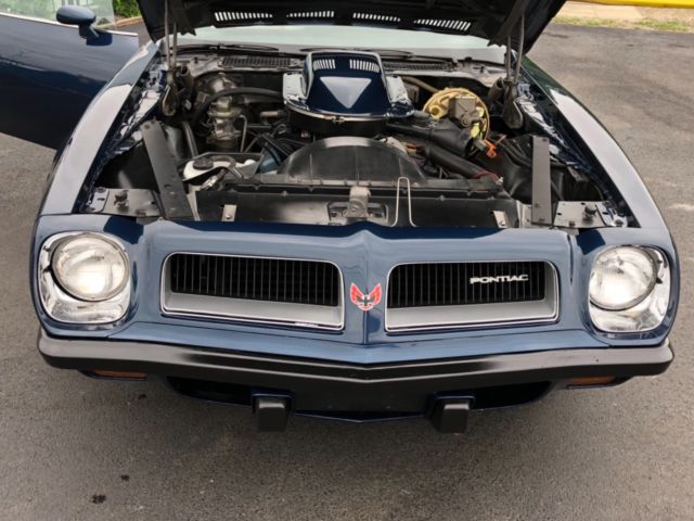 For Sale a beautiful 1974 Trans Am. This car was meticulously restored then the previous owner ran out of funds to completely finish. Although its not an SD it has the 455 cu in 6.6 liter engine, new base/clear Admiralty Blue paint, and most everything is new or rebuilt. A original Nevada car that is totally rust free! DrivetrainThe 455 is a Pontiac date code correct engine but not the original. This engine was rebuilt as was the Turbo 400 transmission and the posi-traction rear end. Motor and trans look factory new. Has power steering and power brakes that function as they should. This is an A/C car but it has not been reinstalled. All A/C components I have will come with the car. Suspension and ExhaustAll of the suspension components were replaced in the restoration of this TA. New front coil and rear leaf springs. New shocks. New front end components. New sway bars. New urethane bushings. The correct exhaust is also brand new and sounds fantastic. InteriorThe white seats, front and rear, were just professionally recovered. A brand new headliner was professionally installed. The original dash pad and dash are in great condition with no scratches or tears. The door panels are new and the console pad is new. The console and slap stick automatic trans shifter are very nice. Brand new carpet set. All glass is good condition. All electrical working but wipers and horn. Needs a radio. ExteriorAs stated the paint is brand new and very nice. A new decal set was installed. New emblems. All the chrome trim is present and looks great. Bumpers and spoilers are in good aligment. The weather stripping has been completely replaced throughout the car. UndercarriageAs stated this car is rust free. The undercarriage is not painted but is extremely clean. All original metal in great condition. See photos. Wheels and BrakesThe Honeycomb 15" wheels have been restored and new center caps and trim rings installed. Brand new 225/60/R15 series Goodrich TA white letter tires were mounted, balanced and installed. Missing lug nuts in photos have been installed. All new front and rear brake components. New brake and fuel lines. One of the cleanest '74 TA's out there. Just needs the right person to finish some small details to have a very valuable Trans Am. With the passing of Burt Reynolds I'm sure these already popular cars will become even more sought after. On Sep-11-18 at 08:54:48 PDT, seller added the following information: THIS IS A 455 CU IN ENGINE NOT A 6.6L |