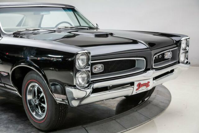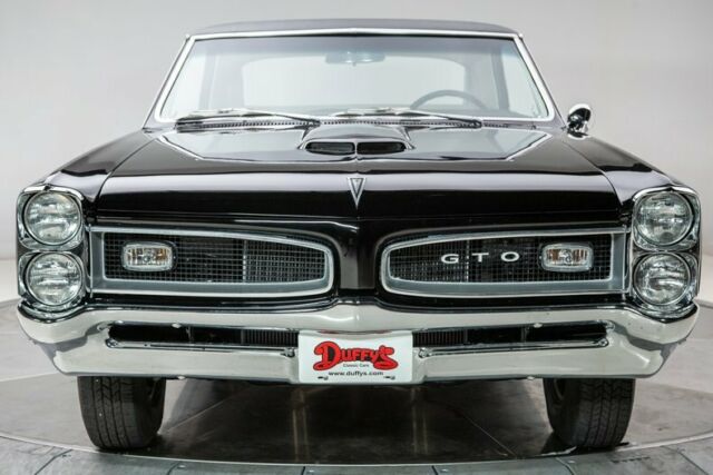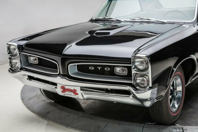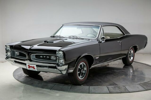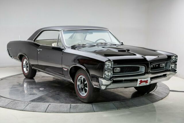 1966 Pontiac GTO Hardtop Tri-Power . John Delorean and his crew first created the GTO in 1964 by wedging a big block into a small body, in many people's minds creating the Muscle Car Era. Well, who would have known what Detroit was about to usher in. Then introduce a gas inhaling Tri-Power set up and presto, a legend. In 1966 Pontiac did a total redesign of their A Body warrior and created the iconic "Coke Bottle Body" look. Here... is one fabulous example of that redesign, with that upper echelon of power available and a more street-able automatic transmission, in a great color combination. This Tri-Power 389 is a fresh rebuild with a fresh installed in a full frame off professionally restored Goat with PHS documentation. Don't miss out on your chance to own a nut and bolt restored, highly desirable, and correct Tri-Power Muscle Car today. Features Smooth rebuilt, detailed NOM 389 CID V8 with 360 Horsepower Tri Power, YC code Smooth shifting Powerglide automatic Transmission Working in Dash Delco AM Radio with correct working Power Antenna Finished in Starlight Black with Pebble Grain Black Vinyl Top Correct new Parchment Bucket Seat interior Full length console with storage and correct Shifter Optional Power Steering Factory Optional Power Brakes with front discs 3.55 open Rear End Correct working Pontiac Rally Clock in the Dash 120 MPH Speedometer with 000187 miles showing on the odometer since the restoration Safety Guard Padded Dash and Sunvisors and Color Keyed Seat Belts Performance Tuned Dual Exhaust with Chrome Tips New set of Coker Redline Radial Tires P217/75R14 New Rally II Wheels with trim rings and center caps Owner's Manual and Pontiac Historical Documentation Included