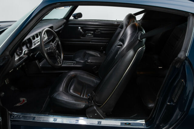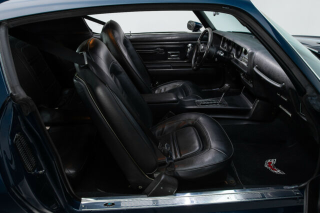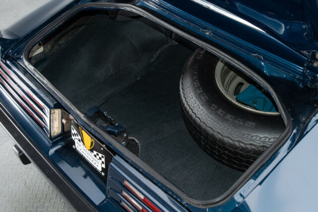 When it comes to interior décor, Pontiac's '70s team was firing on all eight cylinders. While this coupe's insignia may be considered overkill, and its horsepower rating might seem relatively modest compared to earlier muscle cars, there's no disputing the beauty of its design. Correct buckets are clean and crisp, easily defying the car's age. Those seats are framed in correct Black carpet, correct Black harnesses and Firebird floor mats. Between those mats, a molded console plants a small shifter behind correct Delco AM/FM audio. Above that audio, a warp-free dash frames detailed telemetry and factory air conditioning in a bright, engine-turned instrument panel. In front of the driver, a tilting steering column spins a black Formula wheel. And behind the passengers, a matted trunk hides a full-size spare tire.