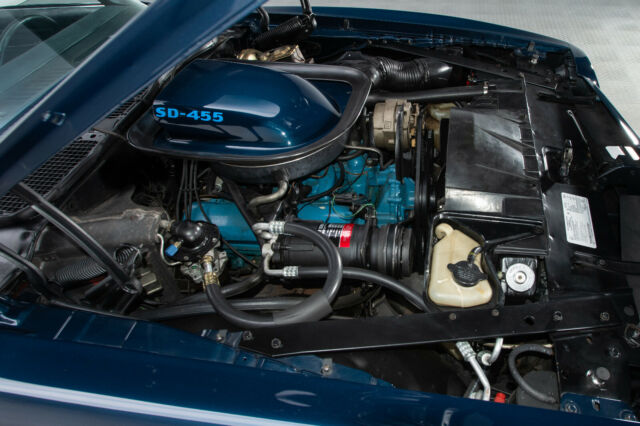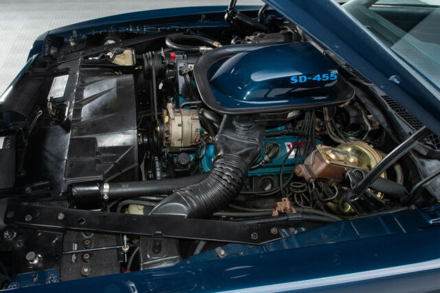 The heart of any muscle car is its engine, and this brawny Super Duty motor. The largely hand-built SD-455, which features significantly reinforced components, shares little more than a displacement number with its more common brethren. And this car's familiar Turquoise mill complements a correct 490132 casting number with a correct "Y8" assembly stamp and matching 122691 partial VIN. At the top of the big engine, traditional Trans Am induction funnels fresh wind in to a big Quadrajet carburetor and correct Pontiac intake. That intake sends a high-octane air/fuel mixture in to unique, high-flow cylinder heads that are capped with familiar, stamped steel valve covers. At the back of those covers, a correct points distributor sequences fire through 7mm AC Delco Premium Silicone cables. Spent gases are jettisoned through fully restored exhaust manifolds. A leak-free radiator, servicing pliable hoses under reliable screw clamps and a familiar plastic shroud, controls heat. And finer details include: correct decals, a correct Delco Moraine brake booster, factory air conditioning and a reproduction Delco battery.