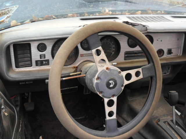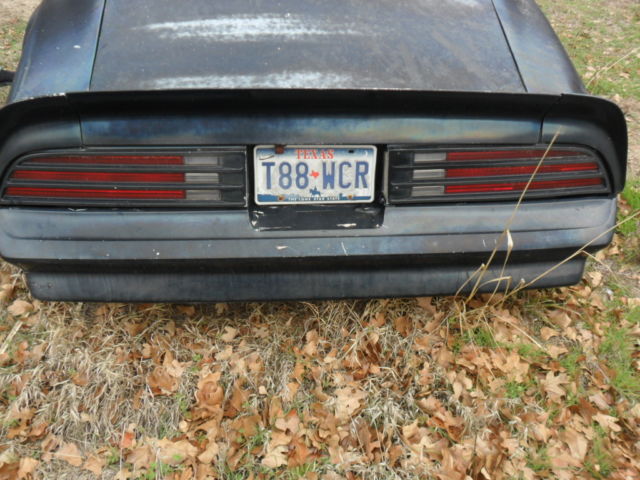 | This is a 1978 Pontiac Trans Am. It is a project car. I bought it several years ago to fix it up. drove it for a while. and then joined the military so it got parked and has been sitting up for 9 years. The car has T top roof (glass needs replacing) and a shaker hood. The engine was working fine when I last drove it. The 350 turbo transmission was professionally rebuilt within the last 5000 miles. The springs and bushings were also rebuilt about 5 months before I parked it. The trunk is in good condition and there is some rust on the passenger side floor pan (see pic) along with the center of the t-top. The tires currently hold air and you should be able to get it on a trailer. Please come prepared as it will probably take some work to be able to move the car as it has been sitting for so long. I have the title in hand but the car will need to be re-keyed. Serious buyers only please! |