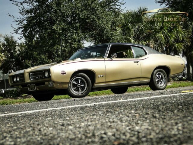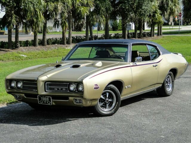 Please visit for additional photos, information and a video. This vehicle is available to view by appointment only. Please call us to arrange an appointment. All Rise for the Judge … tribute. This is a REAL 242 VIN GTO. It has been made into a Judge tribute. If you’re looking for a GTO that is loaded with options, give this car a good look! The list of options added almost 50% of the price of the car way back in 1969. Options included: Cordova top, Turbo Hydramatic transmission, push-button radio, 8-track tape player, door edge guards, visor mirror, remote control mirror, deluxe seat belts with shoulder harnesses, Rally II wheels, deluxe sport steering wheel, center console, rally gauge cluster, power steering, tilt steering wheel, front disc brakes, Soft Ray glass, Air Conditioning, ride and handling package, front and rear floor mats. The window sticker shows the original color as Champagne with Dark Fawn interior, which is still what this GTO proudly wears. The 400 CID V8 engine is force fed with the Ram Air system. It then sends power back to a Turbo 400 automatic transmission that is shifted on the floor. Power front disc brakes with drilled rotors bring this car to a stop in a hurry and power steering makes handling curves as easy as can be. There isn’t much cooler than a 1969 Pontiac GTO, especially when you badge it up like the baddest GTO ever built, the venerable Judge! The exterior is finished off with a rear spoiler and hood tachometer. Hitting the throttle and watching that needle climb on the hood tach is pure excitement. The rumble that follows from the correct exhaust system will give any muscle car fan chills. This GTO is cool in every sense of the word and is ready to bring the next owner years of enjoyment, thumbs ups and car show trophies! This vehicle is eligible for an extended service contract through Classic Vehicle Protection. Click the “Warranty†tab for more info. For additional information on this and our other classic and collectible cars for sale, please visit . For assistance please call the office at 855-472-2982, text our cell phones at 855-472-2982, or email us at . We are located between Tampa and Sarasota. We are 90 minutes from Orlando and Fort Myers.