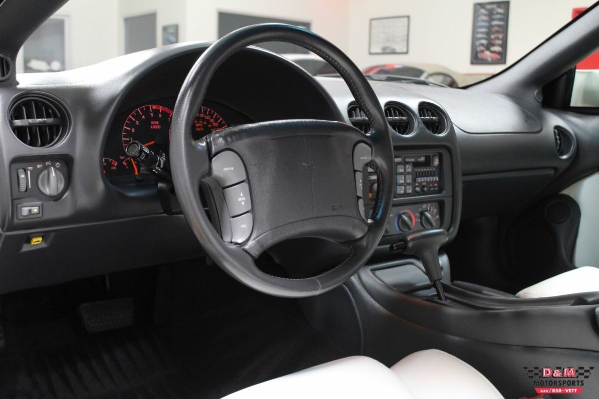1994 Pontiac Firebird Trans AM GT 25th Anniversary Coupe Bright White over White Leather Factory Options: 25th Anniversary Trans AM GT (Originally a $995 Option) 4-Speed Automatic Transmission (Originally a $775 Option) Vehicle Highlights: 5.7 Liter V8 Engine 4-Speed Automatic Transmission Rear Wheel Drive w/Limited Slip Differential Engine Oil Cooler Four Outlet Exhaust Aero Appearance Package Fog Lamps 16-Inch Aluminum Wheels Rear High Sport Spoiler Air Conditioning Bucket Seats Cassette Radio 10 Speaker Sound System Power Windows & Locks Remote Keyless Entry Cruise Control Vehicle History: Exceptional Condition Throughout Spotless Vehicle History Reports -AutoCheck Guaranteed -CARFAX Guaranteed Includes Original Owner's Manuals, Original Window Sticker and Two Keys We Can Assist With Shipping Around the World! |