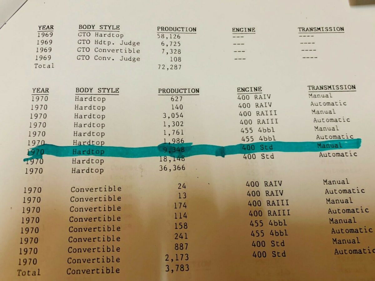Description of 1970 Pontiac GTO |