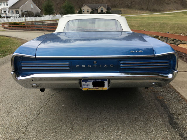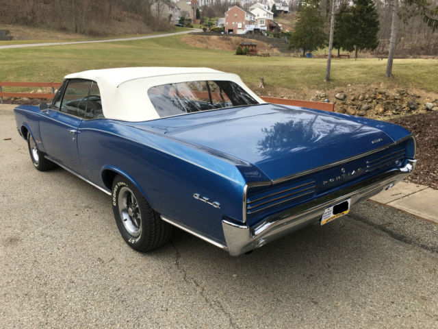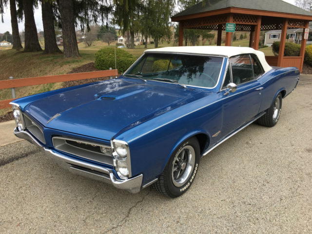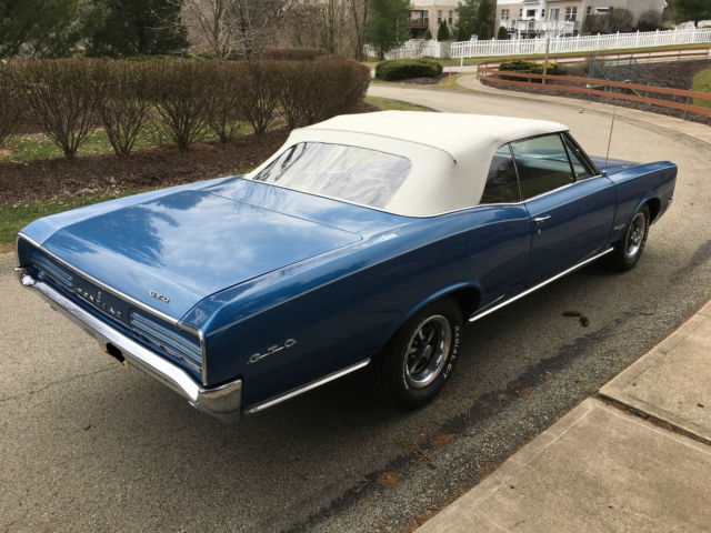 Presented for sale is this 1966 Pontiac GTO Convertible recently refinished in its original hue of Burgundy Iridescent (paint in 2017) and parchment interior (the trim tag even tells you the car was born this way). 1966 introduce Coke-bottle styling to the Grandfather of muscle cars as well as one year only louvered taillights. Nicely optioned with power steering, Rally gauges with full instrumentation and tac (with RPM warning alert), front and rear sway bars, front bucket seats with console, 4 speed Muncie transmission, Rally 1 wheels and power convertible top. Motivation comes from a 1967 Pontiac 400 WT 335 HP with “180†cylinder heads. Power is sent through a 4 on the floor Muncie transmission with Hurst shift linkage and a true dual exhaust. Chrome and trim are excellent with new grilles, front turn signals, woodgrain dash, BF Goodrich Radial T/A’s and carpet. Trunk is solid with new two-piece trunk mat and spare tire. The factory-correct color was given a respray in 2017, and when you pay for quality, it lasts and the nice shine highlights the Coke-bottle styling. Hagerty Price guide is as follows:#1 Concourse: $109,825#2 Excellent: $84,295#3 Good: $45,770#4 Fair: $30,015Vehicle is sold as is with no warranties. Vehicle is listed locally and I reserve the right to end the auction. Payment in full prior to releasing the car. Vehicle is in Marietta, GA (outside of Atlanta) for inspection. Contact: JLMicca@aol.com 770 596-7328HIGHER RESOLUTION PHOTOS ARE AVAILABLE VIA EMAIL REQUEST (THE AD TENDS TO COMPRESS THE FILES).