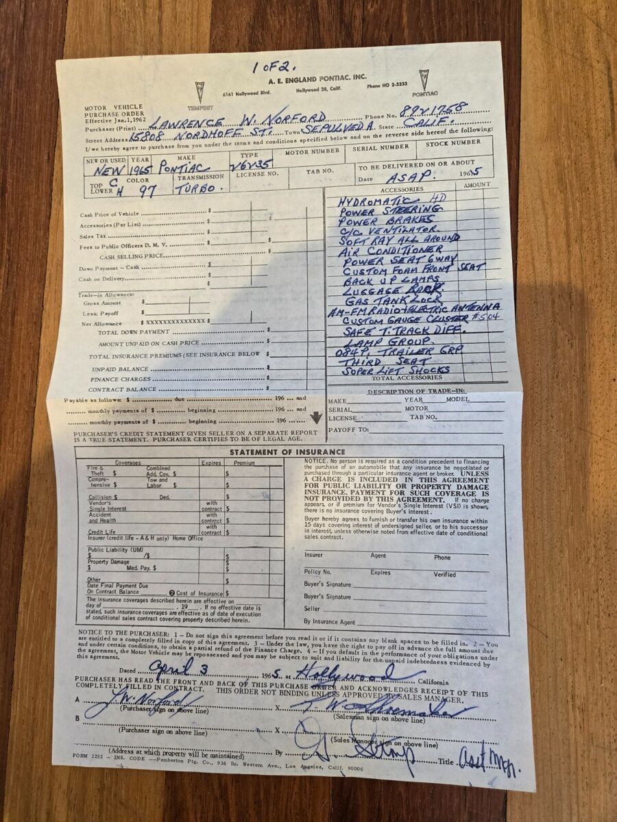 - Has all purchase docs including letter to VP of Pontiac.