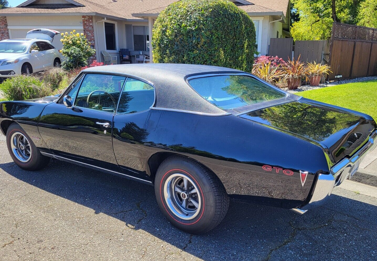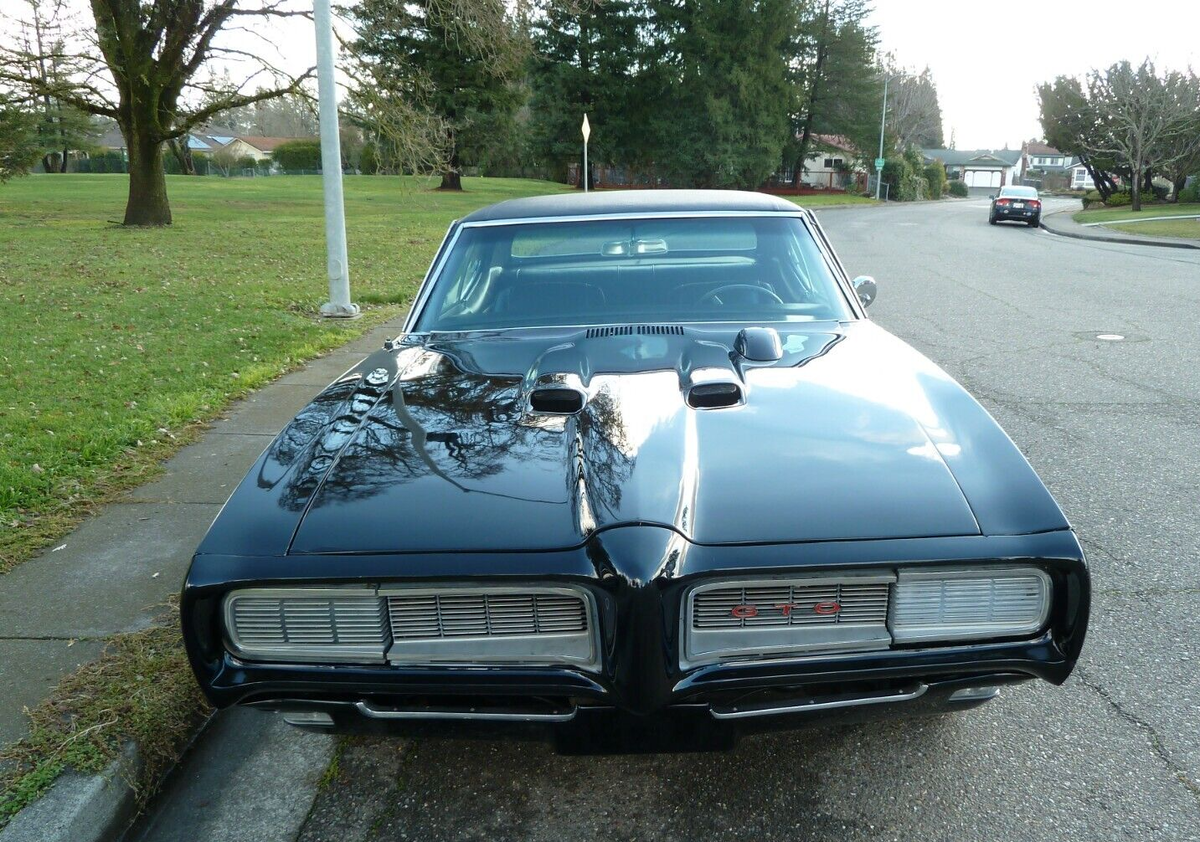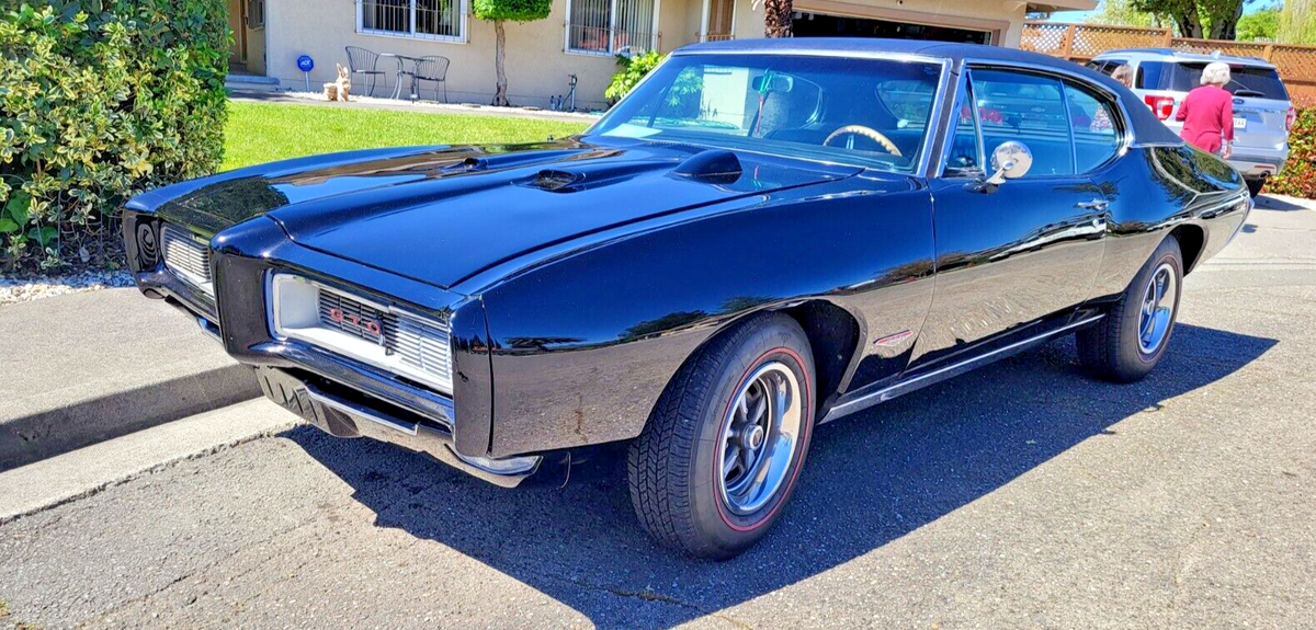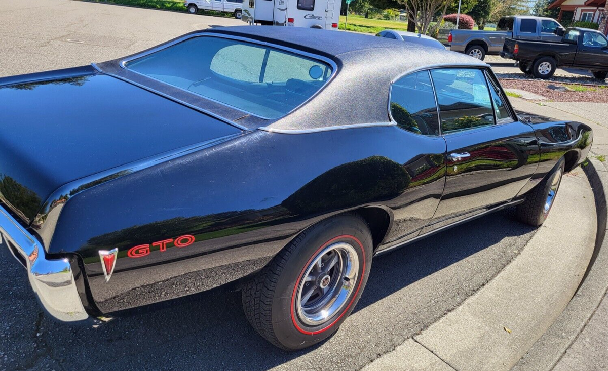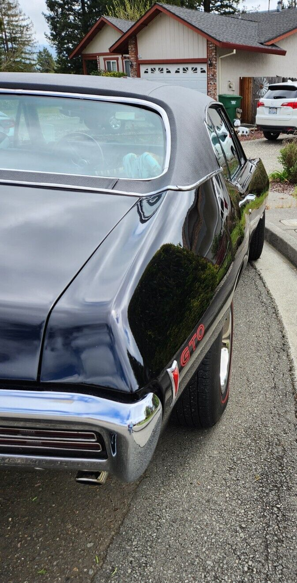 This stunning 1968 Pontiac GTO is a true classic, restored to its original glory. A quintessential American muscle car, it boasts a powerful 400ci V8 engine (non-numbers matching) paired with a TD400HD automatic transmission. Whether you're a collector or a muscle car enthusiast, this GTO is ready to turn heads and create lasting memories. It has been well cared for from the engine bay to the undercarriage and stored in a covered garage since ownership. Perfect for weekend cruises or as a showpiece in any collection. Pontiac's own Jim Wagner, the savior of the GTO program, signed the radiator shroud with the note, "What a nice '68! One of my favorites..."Key Features:Engine: 400ci V8, fully rebuilt to factory specs (documentation included); competition cam installed (documentation included); Edelbrock intake manifold (documentation included); Holley 750 cfm carburetor; long tube headers; electronic ignition; new clutch fan; AC pulleys installed; engine detailed to factory colors.Engine Compartment: Inner wheel wells repaired and painted to factory specs; OE rain shields installed; vacuum-operated front headlight actuator replaced.Transmission: TH400HD automatic transmission (not numbers matching).Interior: Reupholstered with high-quality materials, including front bucket seat springs rebuilt and upholstered in black; rear bench upholstered in black; headliner, door cards, and carpet replaced with black; His/Her Hurst shifter rebuilt; metal dash and all metal trim painted; new black padded dash.Suspension & Brake System: Front and rear suspension replaced with Hotchkis sport suspension; QA1 adjustable front shocks; QA1 adjustable coil-over rear shocks; Hotchkis front and rear anti-sway bars; converted to "RightStuff" four-wheel disc brakes with matching power master cylinder; power brakes.Exterior: Painted black with OE red striping and lettering; replaced vinyl top with new black top.Chrome and Trim: Rebuilt door hinges; new taillight assemblies; new chrome bumper; new hood-mounted tachometer.1968 Pontiac GTOMileage: 6397Vin Number: 242378R185917Original specs:- Exterior color Q Verdor Green (changed to black)- Vinyl top color T3967 White (changed to black)- Interior color 3307 Ivy Gold (changed to black)- Pop-up headlights- Rally 2 wheels *- Red wall tires- AM radio- Manual antenna- Fault indicator lights- Air Conditioning- Power steering- Tailpipe extension- Trunk mat- Hood-mounted tachometerWheel and tire:- New 15" repo Rally 2 wheels- Coker reproduction red wall tiresTrunk:- OE plaid mat- Restored 14" EO Rally 2 wheel with new black wall tire- Jack painted EO factory jack blue- Install a secret audio AM/FM radio systemInterior (additional information):- Refurbished AM radio- Refurbished clock with new quartz movement- "Idiot light" dash replaced with new OE instrumentation *- Headlight electric/vacuum switch replaced- New AC/HTR underdash distribution box rebuiltWiring:- All new OE wiring harness.Areas of note:*Horn relay missing*AC compressor, receiver dryer, condenser, evaporator missing*Rear main seal weeps a little oil (very little)