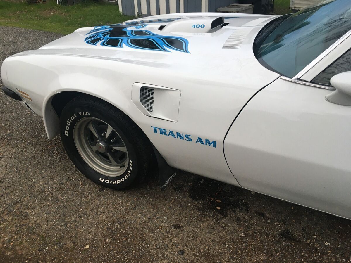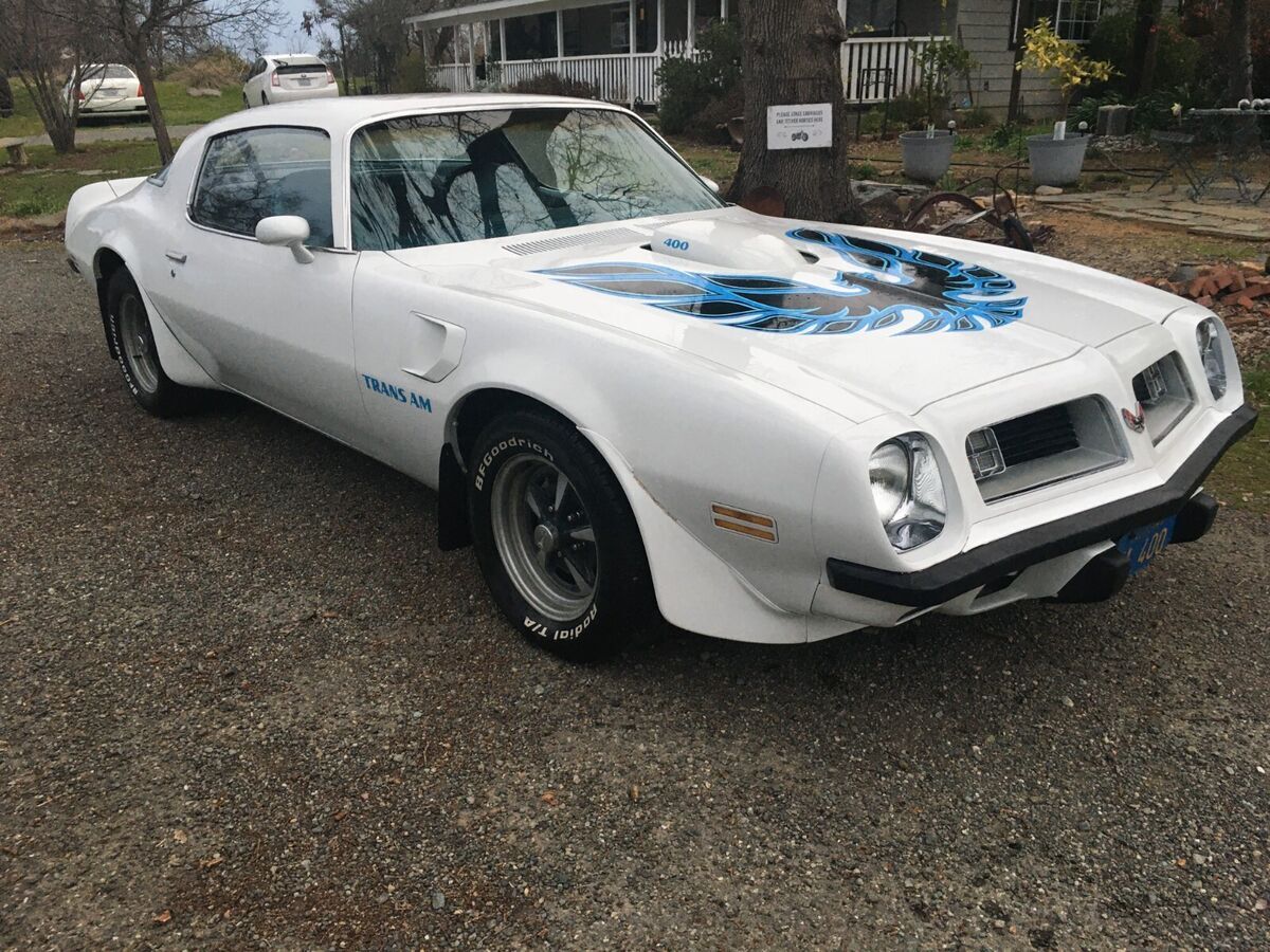 I DON"T USE CARMEL OR ANY OTHER EBAY PAYMENT OPTION -except Pay pal, I trust PP EB not so much-(just wanted to make that clear)VIN 2W87SN5 (5302006526)1975 Trans Am TA400 TH400 PDB PS Tilt Wheel AC car factory tinted windows BLUE/WHITE Livery BEST colors ever - CLEAR TITLE Registered until June of 2025Dual exhaust aftermarket mufflers, sounds great but not loud, perfect rumbleThis Trans Am is a nice driver with recent paint a rebuilt 1970 400 with number 11 heads with nice Cam to match the TH400 Transmission stage 1 shift kit which shifts firm but smooth - Car drives NICE!!! SMOOTH!!! COMFORTABLE!!! RELIABLE!!!Everything works except AC (compressor is in the trunk) and dome light above driverA pleasure to driveNew Front seats re-done Deluxe interior Sway bar links and Steering box, brake calipers pads, rotors and wheel bearingsRecent Engine rebuild (sorry don't know details but runs and drives well) Recent Paint No rust CA car - Recent front brakes and rotors BFG TA TiresOriginal Dash in excellent condition- original carpet and rear seats-needs headliner but it's fine without (see pic)All gauges work but fuel gauge is a bit eccentricAC compressor is not installed but includedOE valve covers come with carThere is a chip in the passenger door that needs repair (shown in pics) Body shop quoted $600 also drivers outside door handle needs replacing as it has been repaired but should be replaced, finally passenger front seam (welting) on flare should be corrected all shown in picsThis is a high driver quality car that can be taken to the next level or just driven as isIf it was perfect the asking price would be 45K it is not but it is a great running `nice riding clean- partial survivor that is respectable, enjoyable and fun to drive as isTA 400 Plates go with car no matter who buys it in whatever state - because they are cool and you should have themI have been watching these videos about daily driving classic cars - Heck yeah you can drive this to Ohio tomorrow!!!BTW what did they think we drove back then? Uhhhmmm... Classic cars? YES!!! Everyday-In the 80's I drove a 69 AMX 4 speed car in So Cal traffic daily to work for 5 years- I still drive classic cars to work today- There not difficult just more fun and lets face it life is short- DRIVE SOMETHING FUNI have described this to the best of my abilit, as I think of things I will add them, but this is a very accurate descriptionHit me with an offer I'm dealing- Everything goes so I can leave CAhttps://youtu.be/ZFNwpmSc5wc Cold Starthttps://youtu.be/lcwWfWffxhU Driving TAInspections welcome 0 feedback please contact before making offersShipping is buyers responsibility but I will help in any reasonable way or Fly in and drive it home!!! I have done this twice and both trips became great memories for both buyers and myself (Man I miss that Mustang lol) And (Firebird buyer- if your seeing this- How did the resto come out?)I DON"T USE CARMEL OR ANY OTHER EBAY PAYMENT SYSTEM (Just wanted to make that clear)You pay me - I fedex you the title just like we have always done it 5302006526 ask all questions$250 non refundable deposit thru pay pal within 24 HoursBalance due in 7 Days car leaves when funds clearI don't use Carmel Escrow or any other service offered thru Ebay - deposit thru pay pal within 24 hours balance thru cashiers check/bank transfer/ or cash on pick up within 7 daysNo rush on shipping if paid in full and will work with your shipper to make it happenCar sold as is where is with no warranty expressed or implied