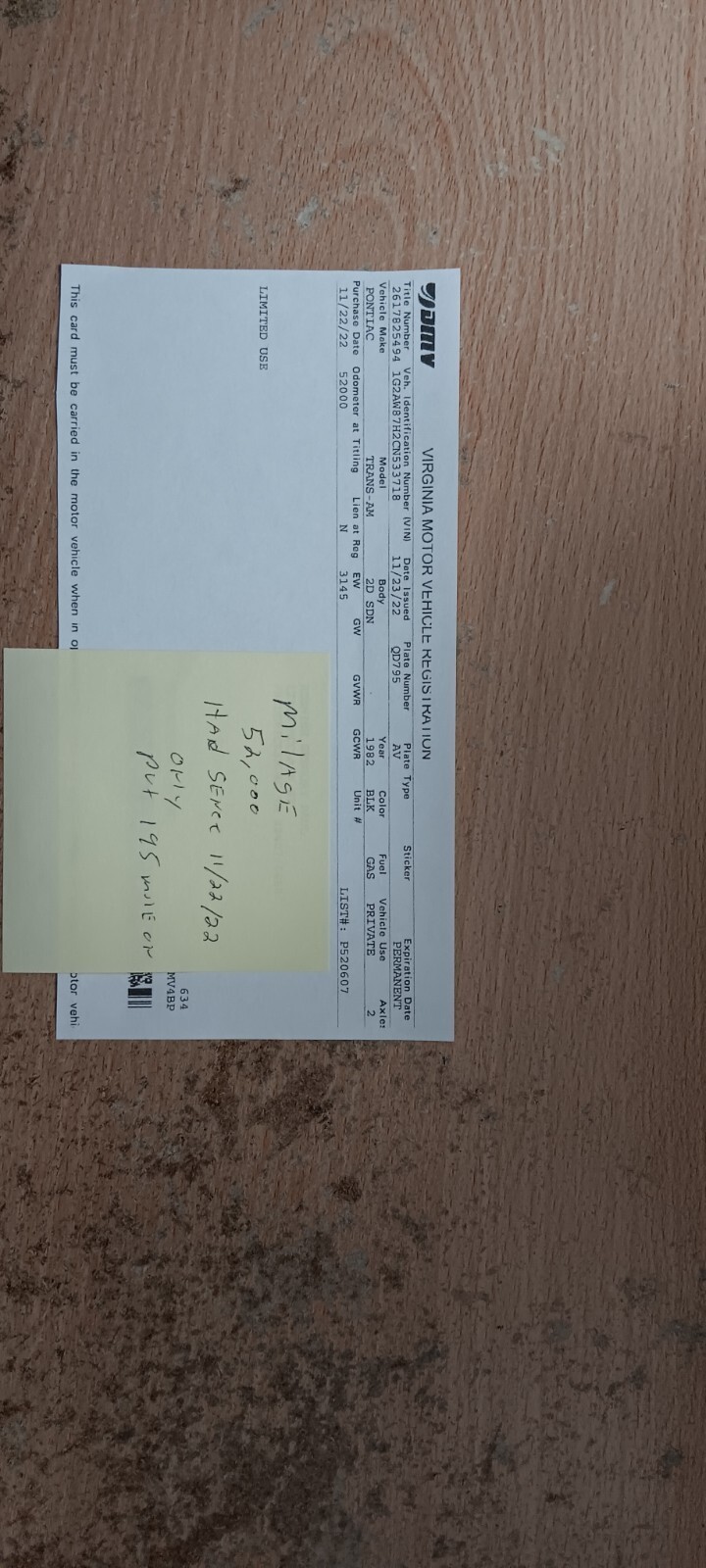 Currently has 52,195.00 original miles. I put the hundred and ninety-five miles from 11/23/22 to present see pictures. T-tops don't leak. All seals replaced when repainted by previous owner, I had it ceramic coated. This car is all original Except: Reliability parts to ensure safe driving, "not needed" but desired: 4bbl rebuilt, plugs. wires, oil change, no leaks underneath, cap, rotor, ignition modular, coil, tires, brakes, a/c compressor and hoses R-134 conversion **Ram air set up cost 1,000.00. old stock air cleaner included 14" bowling ball hub caps nos still in box on car. old scuffed up ones in boxes included. Flow max muffler 80 series runs great. Car is garage kept and covered always car came with flat hood must check box for turbo hood then in 1983 became standard. Has red scanner light in front. only allowed one video. send # and I will send more videos to you, upon request. plates are included 1982+Knight." AS IS WHERE IS!" will not take car anywhere, especially means overseas buyers.Payment: to get clear title pay cash cod or certified bank check from bank and must clear before Release of car. Don't show up with bank check in hand. fed-x to me first. to ensure it clears. Have total funds no payment plan, no trades. no deposit no reserve.last note: not much work if you were going to make K.i.t.t. have video of working scanner that's installed plug, and play can be removed if desired. This car is not a Barrett Jackson, or race car, it is a stock with all emissions.