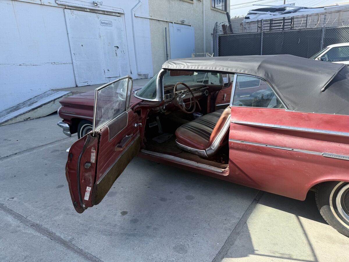 Up for sale this 1960 Pontiac Bonneville in running and driving condition,cars is been seating for a while so it will need service,probably carburetor cleaning,and some TLC… This vehicle has its original AC system from factory untouched.. I’ve been owned this car for a couple months, I bought it from previous owner in Oklahoma are, Vehicle Details This vehicle will run and drive for a couple blocks with no issues, not ready for highway traffic. This car will need a total overhaul,refurbish restoration for a show quality car. It will need front and rear floor pans Rear trunk pan is a bit weak as well but still holding shape. New convertible vinyl to, convertible hydraulic pump and hydraulic lines. Carburetor will need clean up. Good tires all around All windows goes up and down Front windshield is cracked |