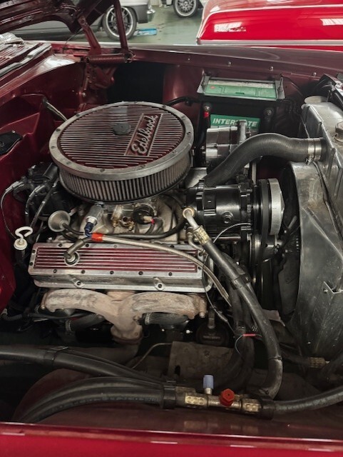 All original body panels and floor pansGM Crate 350/350HP with upgraded aluminum intake and electronic ignition.Edlebrock 4 barrelGM Crate 700R Automatic 4 speed with overdriveCustom aluminum radiator/electric fanVintage ACPower Disc brakes12 bolt rear-endIndependent frontline suspension (TCI front clip with adjustable coilover)Rack and pinion power steeringDual exhaust with resonatorsNew wiring harness throughoutCustom paintAll trim inside and out is like brand newIlluminating hood ornament with LED lightLED headlights and LED lights on the interior and exterior brakes, turn signals, etc.Tilt wheel with custom steering wheelGray and Burgundy interior with electric split bench upfrontKenwood wireless touchscreen with Apple carplay and backup cameraAll original gauges with clock that works This is a very sanitary all original body and trim before the resto even started. I recently drove this car from Hot Springs, AR to Biloxi, MS for cruising the coast. It was approx.10 hours there and 10 hours back Can assist with shipping. Check out the Youtube videos by clicking the links below: https://youtu.be/1mm9yBgD4Jo?si=Xp-zxjS7D7tkn0uJhttps://youtu.be/1GqUq0lEhdc?si=IOL-FOuLmatXsGgt https://youtube.com/shorts/g7MIWkrQ84M?si=2M9gfA05Yxp4Yq9H
