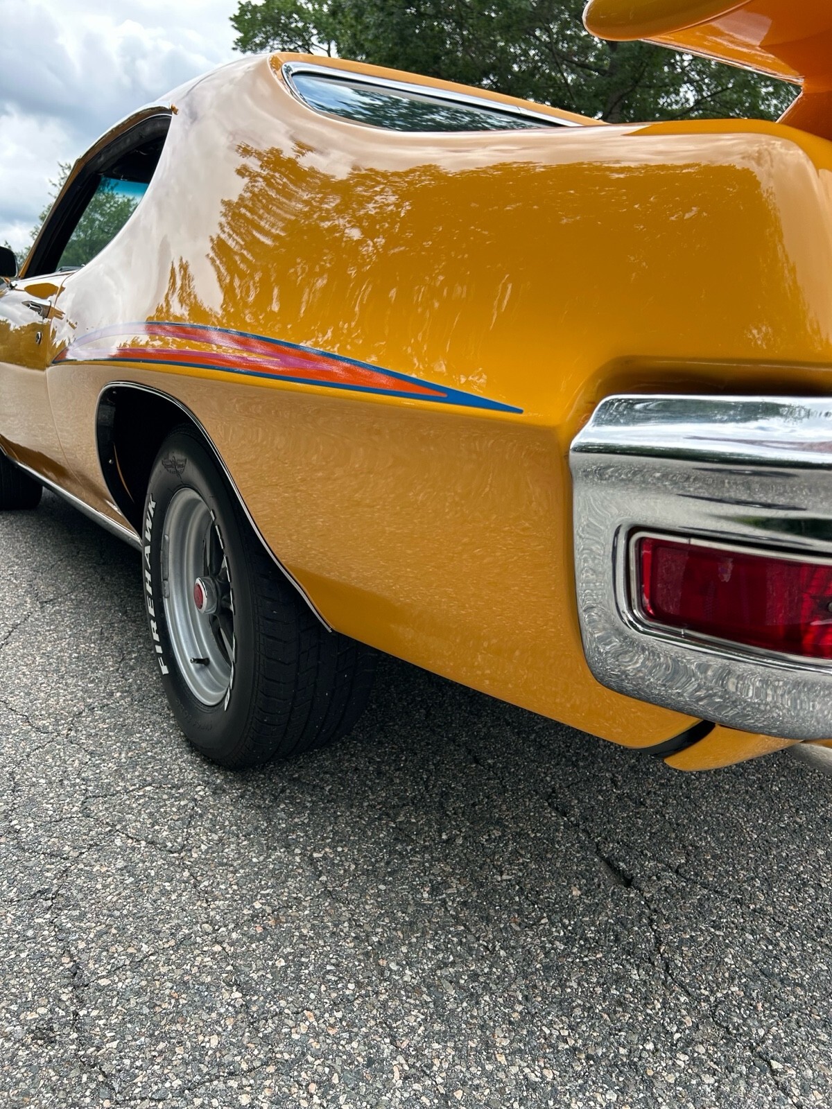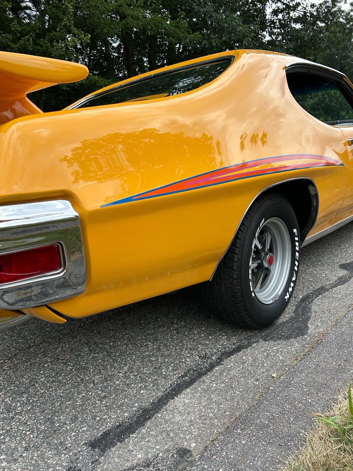 1970 Vehicle Details Up for sale is a 1970 Pontiac GTO. This car was born a genuine 24237 Car. It is now a Judge replica. Stunning Orbit Orange with Black interior. Immaculate new black interior including headliner, seat foams and covers, carpet, weatherstripping, and trim. It is powered by a freshly rebuilt engine and trans. Its Pontiac 1971 455 YC engine is matched to a muncie 4 speed transmission. Complete new suspension, exhaust system, fuel system, and brake components. Added funtional ram air hood, hood tachometer, Judge graphics, and original 1970 rear spoiler. Sold new in Texas. Incredible undercarriage. According to PHS it’s original equipment includes power steering, power, brakes, air conditioning, decor group, rally wheels, console, AM Radio. Great muscle car reasonably priced $65,000 John Casey 978-994-6884 |
