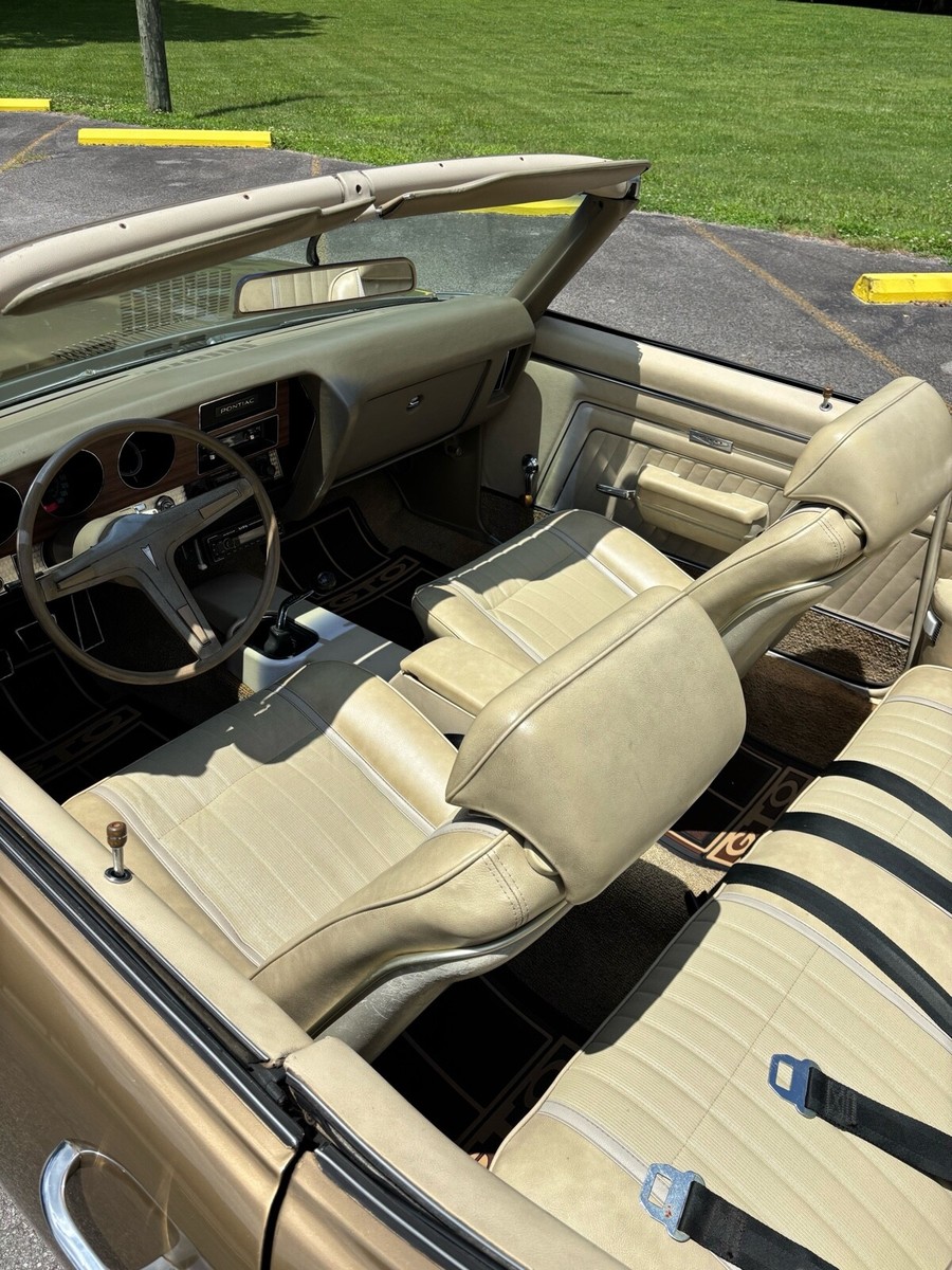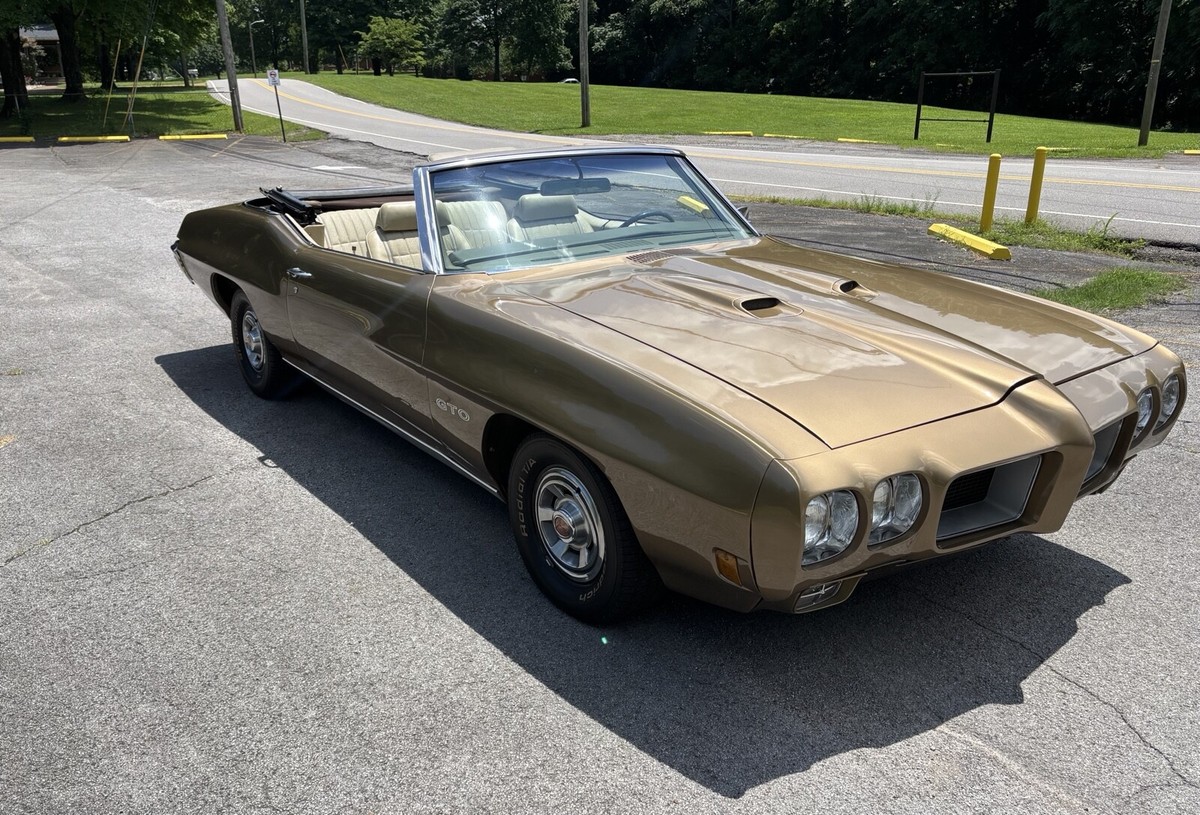 Great looking, running, and driving 1970 Pontiac GTO convertible. Vehicle Details Selling my highly original, 1970 GTO 4 speed convertible. True GTO! All numbers matching! I am only the second owner of this beautiful car, the first owner purchased it new in November of 1969,and I still have the receipt(pictured) along with many other documents. This is a rare car being a 400, 4 speed manual convertible. From what I have found online there were only around 1,200 GTO’s built in 1970 with a 4 speed manual transmission, and the 400 engine. This car has only 91k miles, was always babied, and garage kept. It is still the color it was from the factory “Granada Gold”, the paint almost changes in different lighting from gold to greenish to brownish, and gets compliments all the time. The interior, like the exterior is in great shape, and it has an upgraded Bluetooth stereo and upgraded speakers so you can enjoy your music while cruising with the top down. The power top works great and is in great condition. Lights, horn, gauges… etc all function. As you can see from the pictures underneath, this car is solid and not rusted out. The underside is really as solid as the pictures look. It has never even been coated like a lot of people do to cover the underside of their classic cars. The trunk has a few brown discolored spots, but most of the factory green trunk coating is still intact. You can just get in and drive this car anywhere. It runs great, shifts smooth, rides smooth, and it cranks right up. I don’t really want to sell the car but another investment opportunity has come up, so if it sells, I will do that, but if not, trust me, I’ll be happy to keep it. It is a blast to drive, gets looks, waves, and thumbs up everywhere I drive it. I am asking 53k or feel free to make me an offer. You will not find a better condition, better running and driving, 4 speed 1970 GTO convertible for this price. Clea, clear TN title in hand. Please message me with any questions or offers. 615-972-1118 Thanks. |
