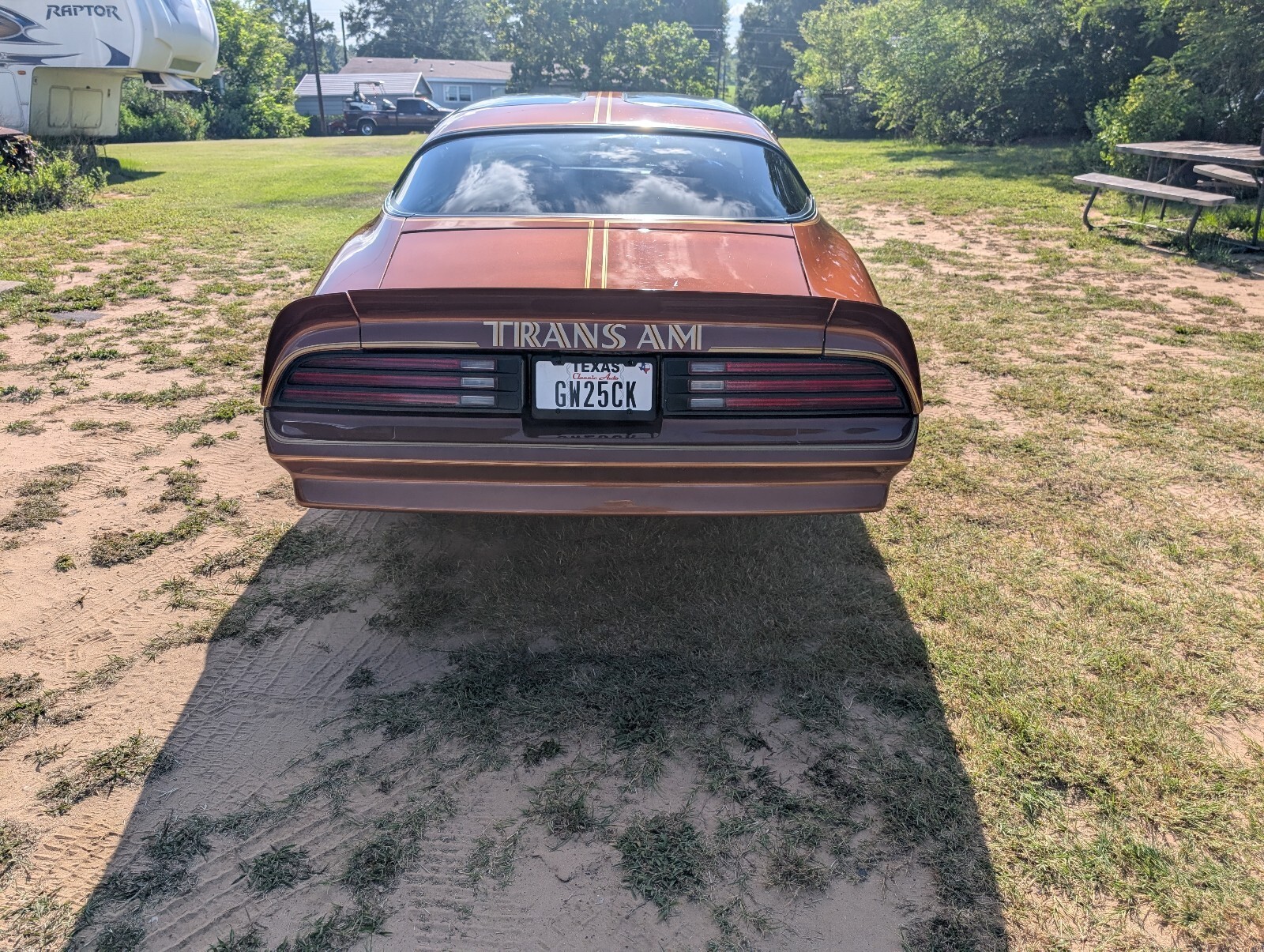 This is a very nice 1978 Trans AM,one year only Chesterfield Brown(Copper), original 400 Pontiac (TA 6.6) original 4sp now tremic 5sp,one made to fit car,no hacked floors,3:23 posi,T-tops,power window,power locks,power trunk,rear defogger,tilt,cruise. 400 has been hoped up for more power,heat wrapped headers, mandrill bent exhaust,ra III cam, aluminum intake ECT. Hydrolic clutch, vintage air,ws 6 wheels. Damn near mint original int,Very nice original weather strip. Very straight rust free body,with a high quality repaint,no bubbles or scratches,SE stripes.Very nice original floors with factory primer.Car runs hard,no rattles or squeaks,t tops are tight,no leaks. Cruises highway effortlessly,no overheating. This is a nice ta.Have more pictures and video. $45,000 OBO any questions please call 903-three five2-0147 Vehicle Details Relisting due to buyer flaked out.This is a very nice 1978 Trans AM,one year only Chesterfield Brown(Copper), original 400 Pontiac (TA 6.6) original 4sp now tremic 5sp,one made to fit car,no hacked floors,3:23 posi,T-tops,power window,power locks,power trunk,rear defogger,tilt,cruise. 400 has been hoped up for more power,heat wrapped headers, mandrill bent exhaust,ra III cam, aluminum intake ECT. Hydrolic clutch, vintage air,ws 6 wheels. Damn near mint original int,Very nice original weather strip. Very straight rust free body,with a high quality repaint,no bubbles or scratches,SE stripes.Very nice original floors with factory primer.Car runs hard,no rattles or squeaks,t tops are tight,no leaks. Cruises highway effortlessly,no overheating. This is a nice ta.Have more pictures and video. $45,000 OBO any questions please call 903-three five2-0147 |